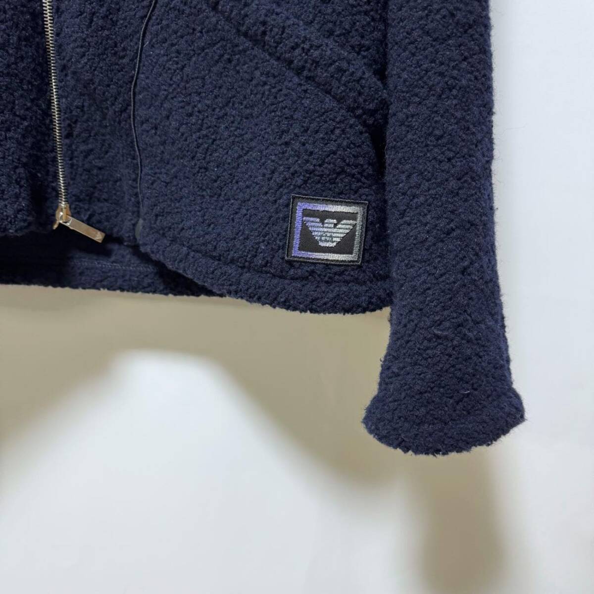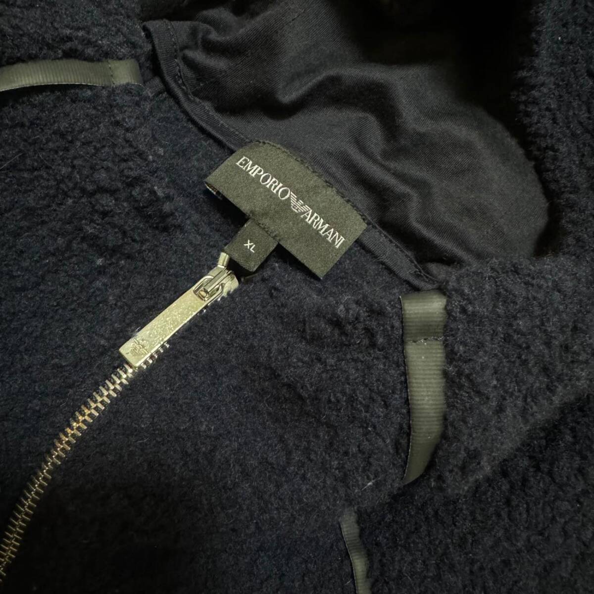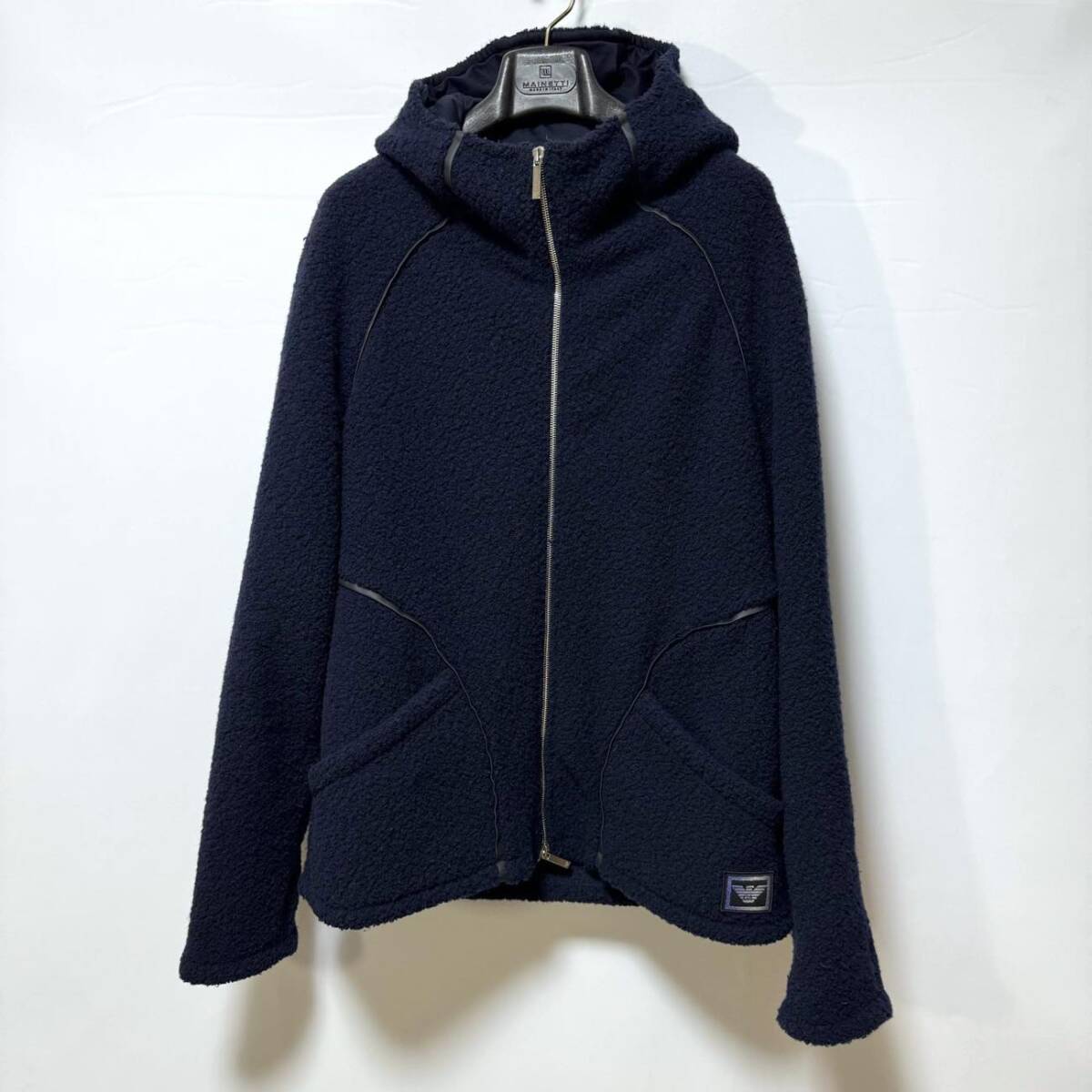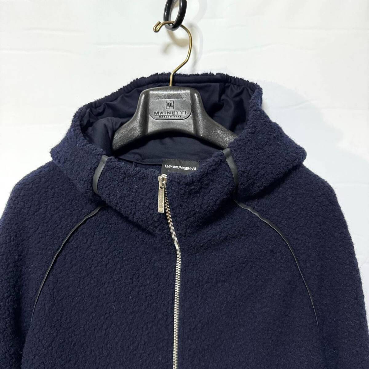 エンポリオアルマーニ ボアパーカー XL 定価156,400円 EMPORIO ARMANI ロゴパイピングウールジップフードジャケット ネイビー メンズ 紺