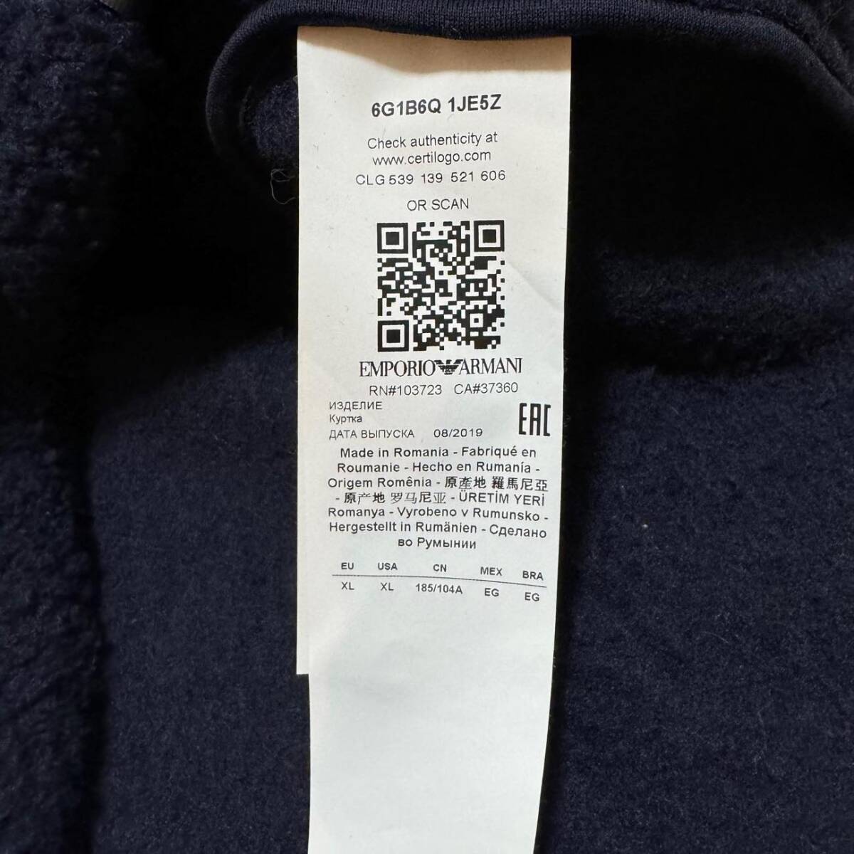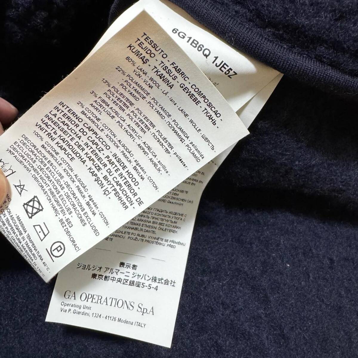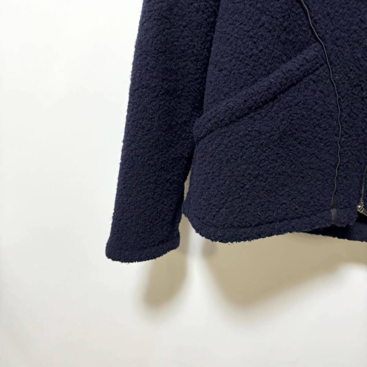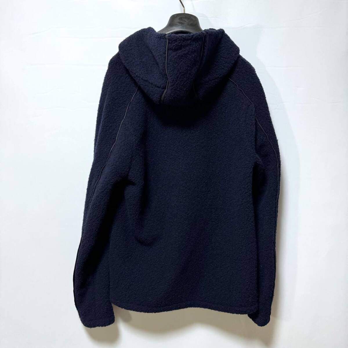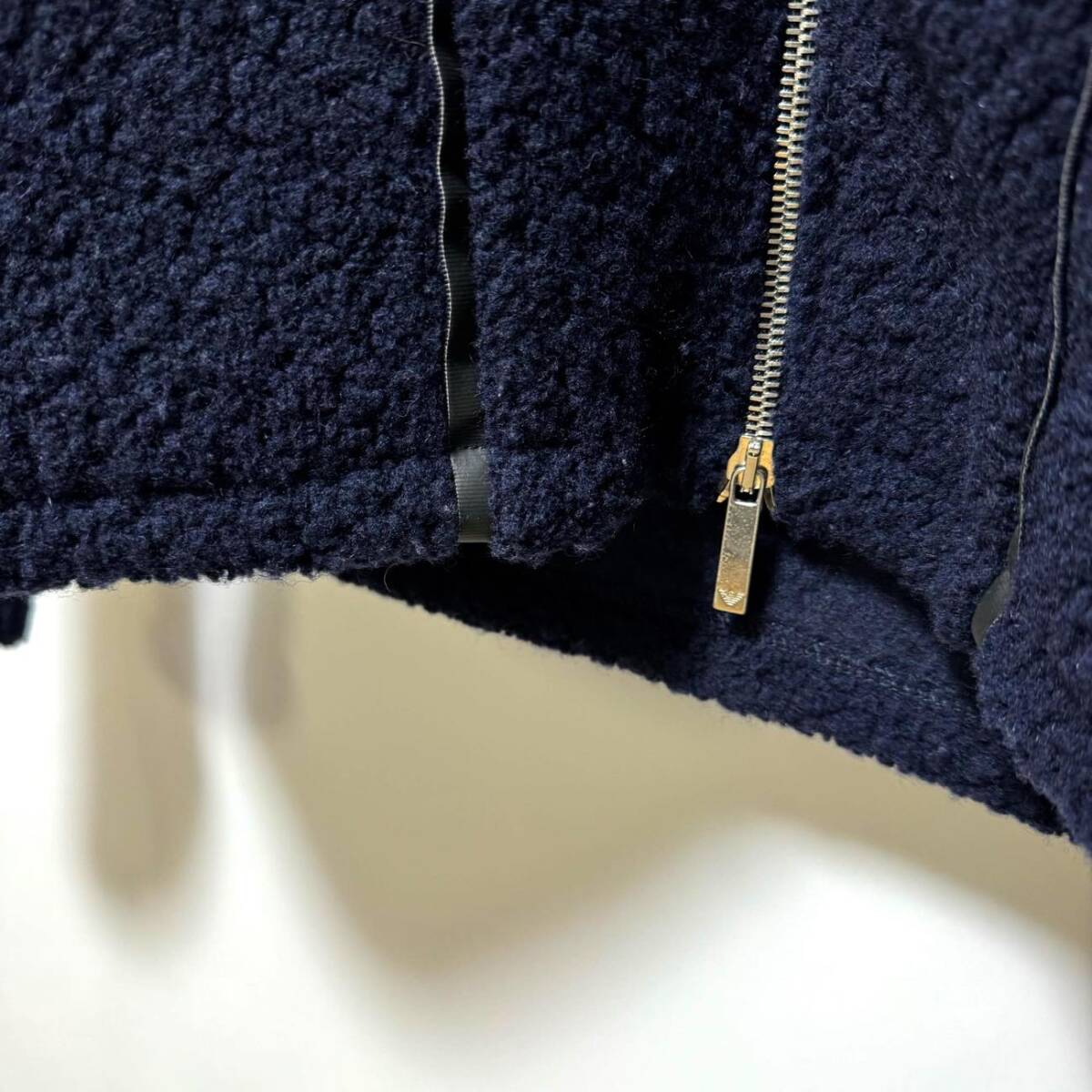 エンポリオアルマーニ ボアパーカー XL 定価156,400円 EMPORIO ARMANI ロゴパイピングウールジップフードジャケット ネイビー メンズ 紺