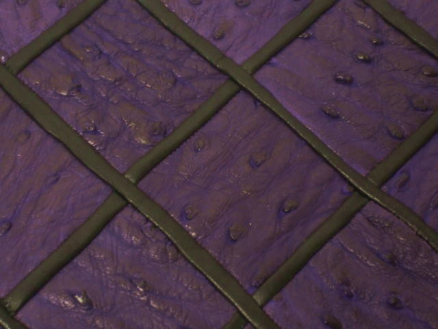 『革質がとても柔らかくしなやかでクイルマーク(羽を抜いた後に出来る丸い突起)が特徴の高級皮革オーストリッチ』カットワークデザイン加工をした