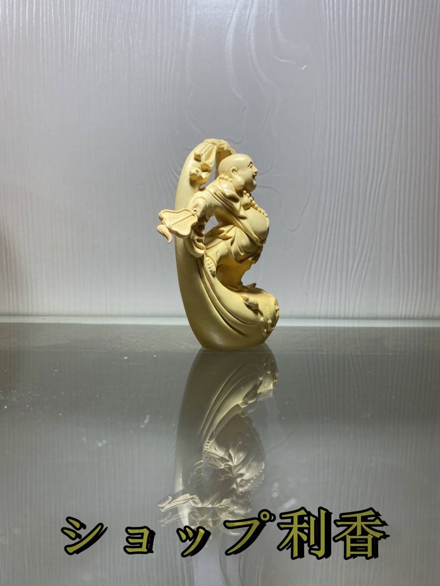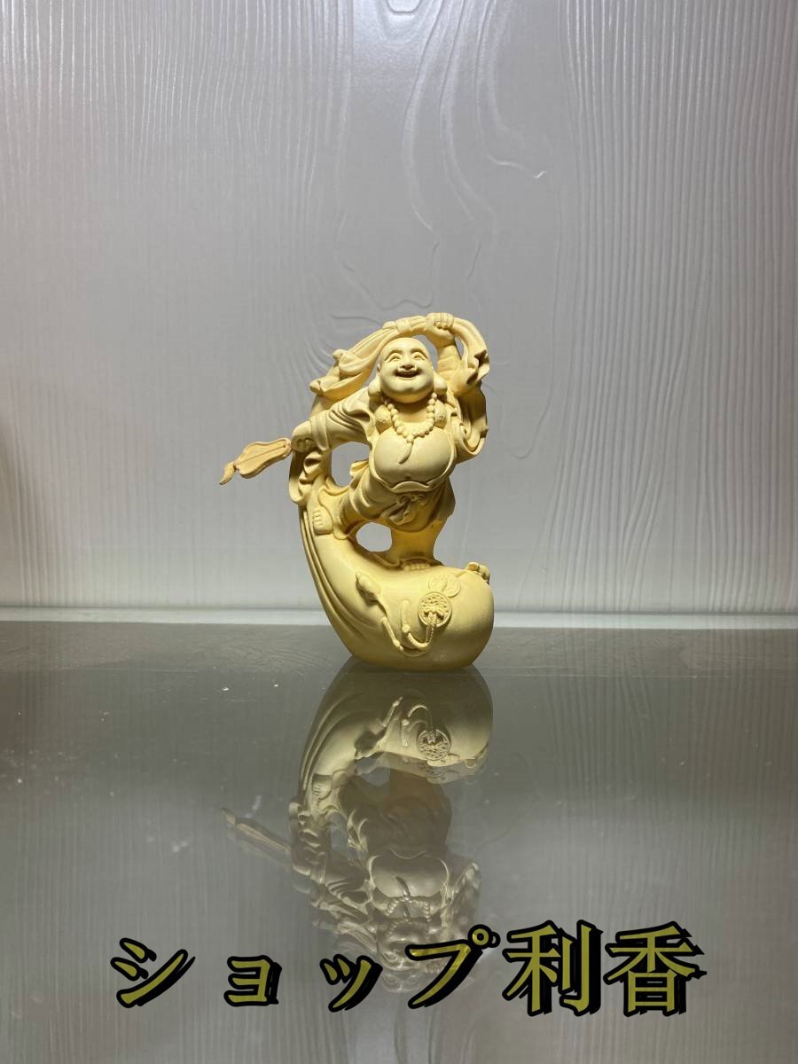 風水 布袋様 置物 布袋尊 招財開運 ダンス 弥勒仏 弥勒菩薩 木彫仏像 仏教美術品 総柘植材 木製 仏師で仕上げ品