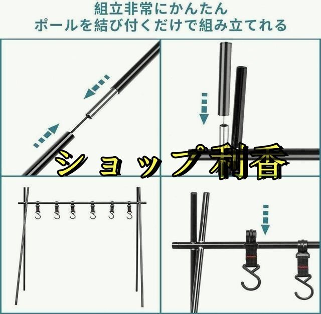 【商品仕様】 Size:L 錆びにくく頑丈な高強度のアルミ合金素材を採用。 耐荷重約10kgでランタンや洗い物などが掛けられます。 組み立て完成後のサイズ95×85×90cm 6つ可動式ハンガーフック付属