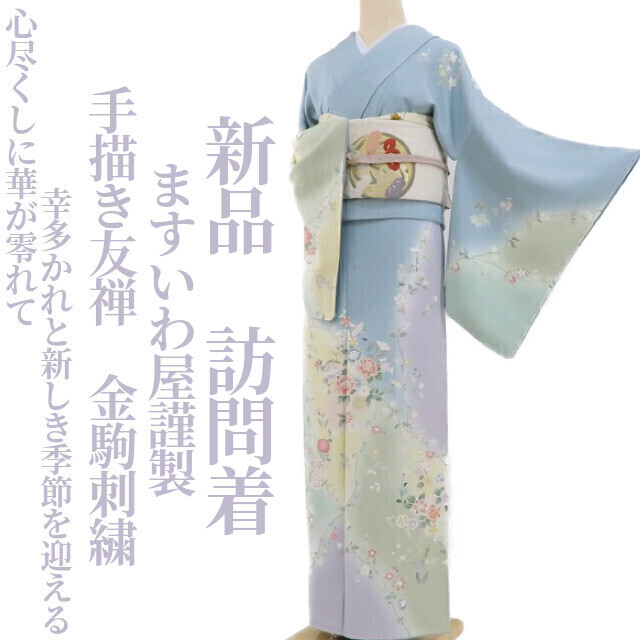 tomihisa 新品 ますいわ屋謹製 手描き友禅 金駒刺繍“華が零れて幸多かれと新しき季節を迎える”着物 正絹 仕付け糸付訪問着 3342