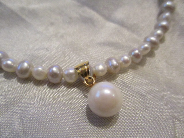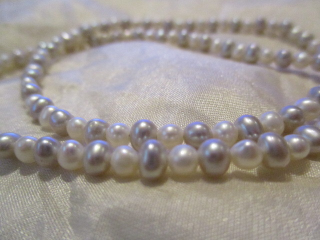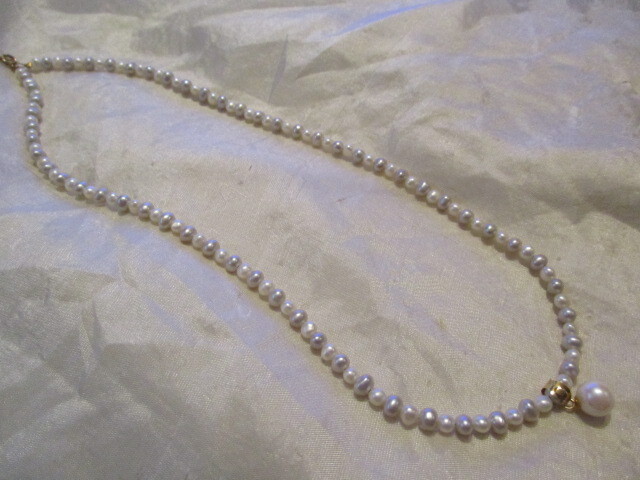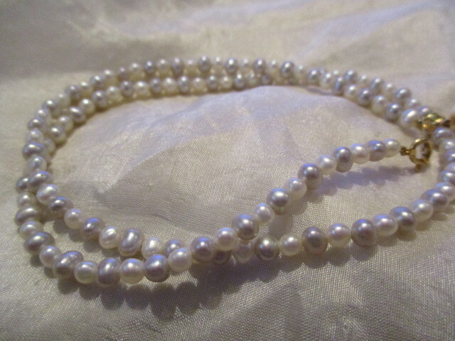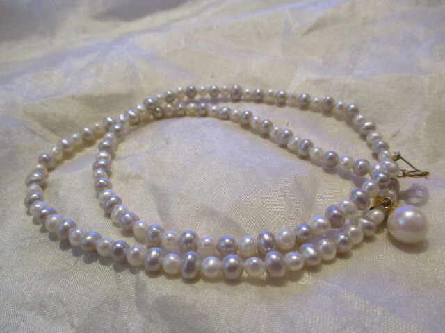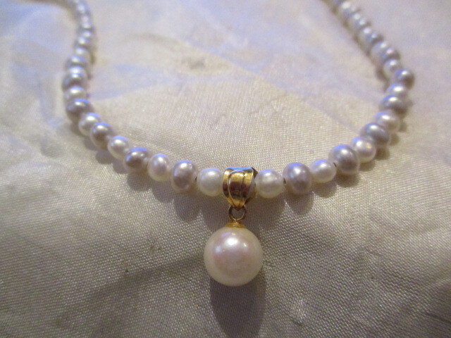 □K18 天然本真珠 淡水ベビーパール(約2㎜)&あこやパール(6㎜)ネックレス ホワイト グレー ㎜ 44㎝ 9,6g 未使用保管品□ □ | |||||||||||