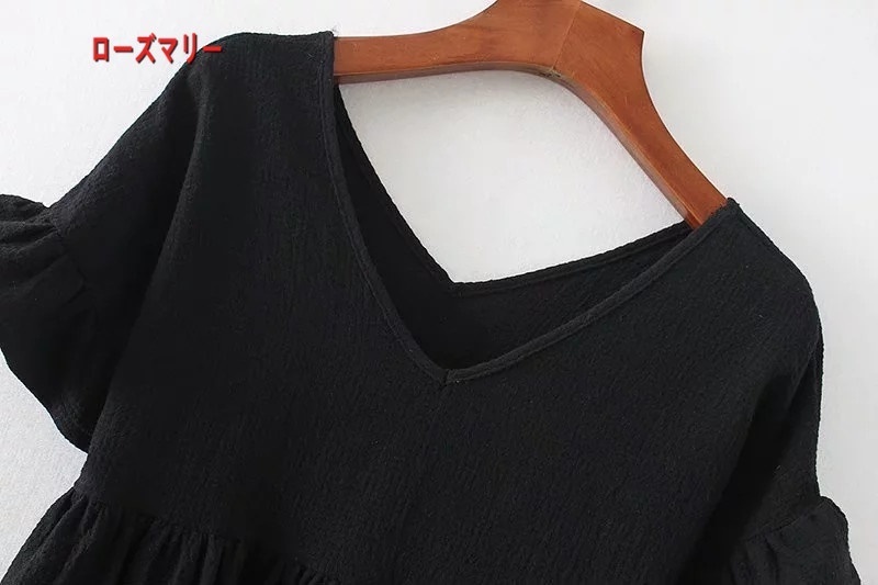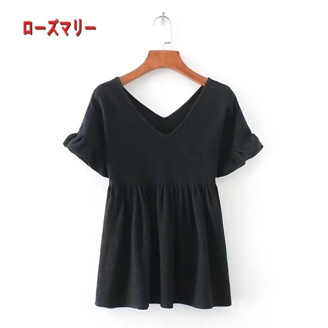 前後Vあきでお袖フリルで胸下切り替えありフレアーでラインキレイで可愛いトップスになります。