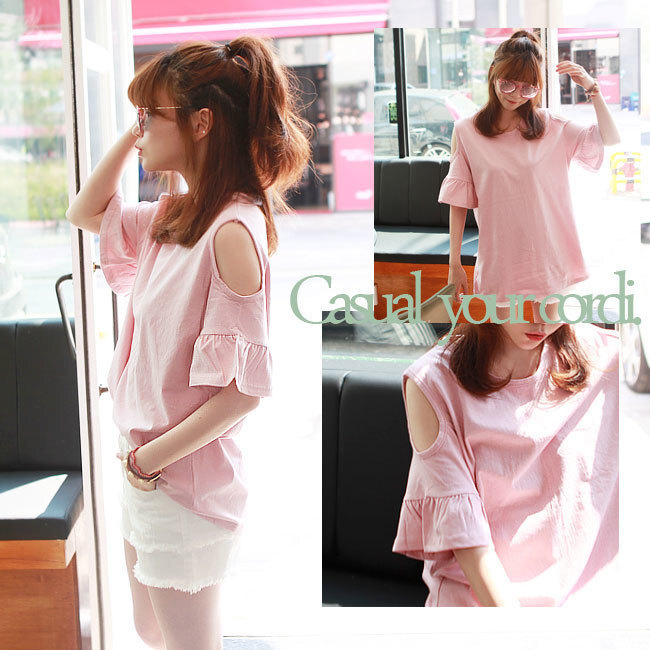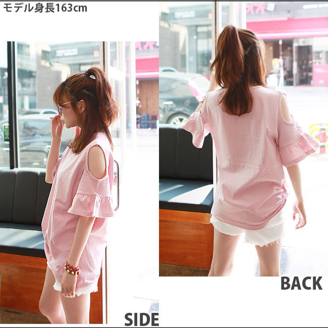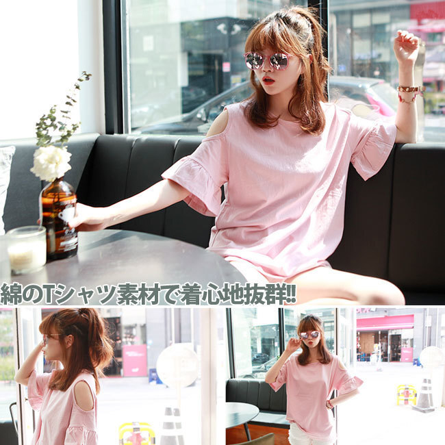★ラブリーカワイイ系★肩あきフリル★カットソー・Tシャツ丈長め★未使用