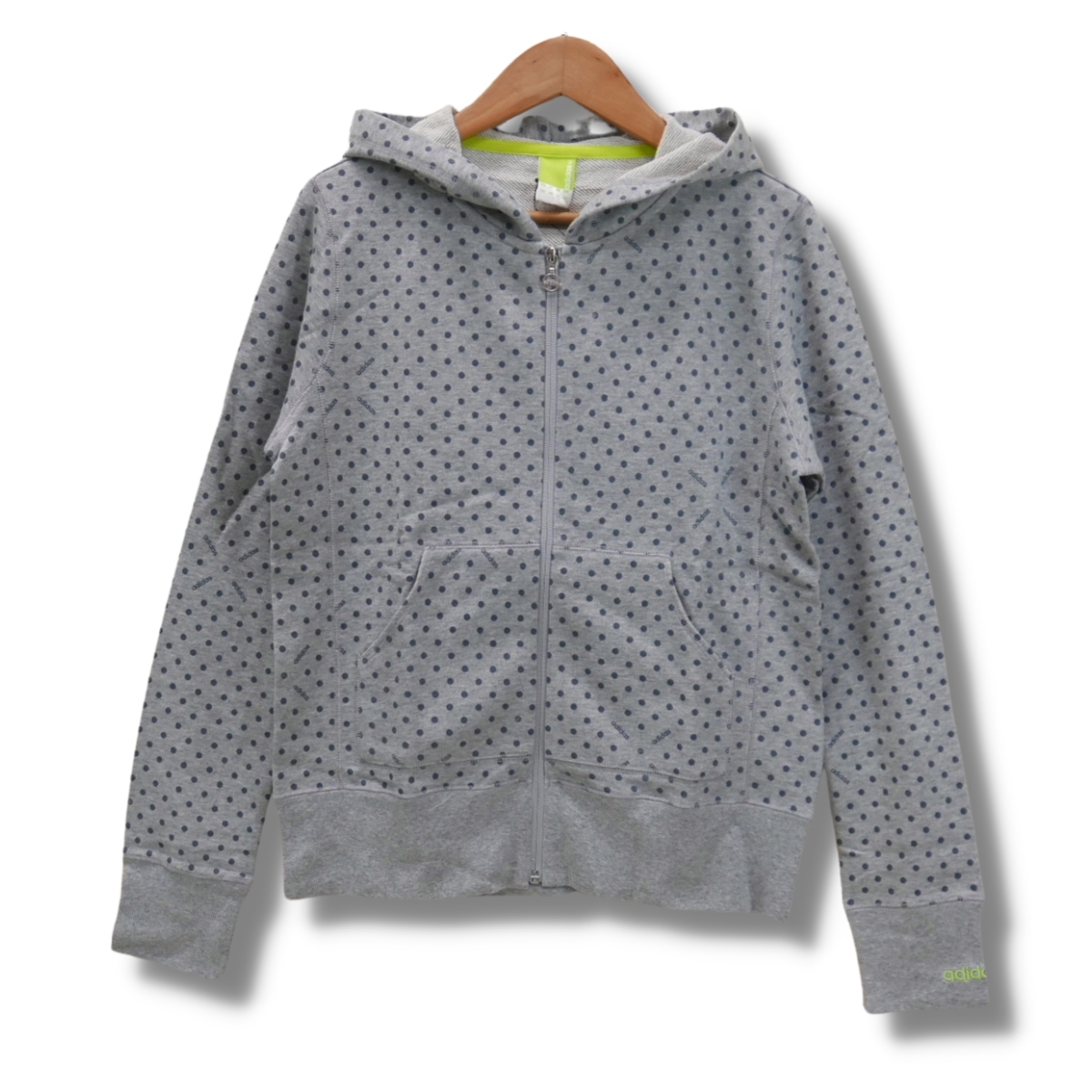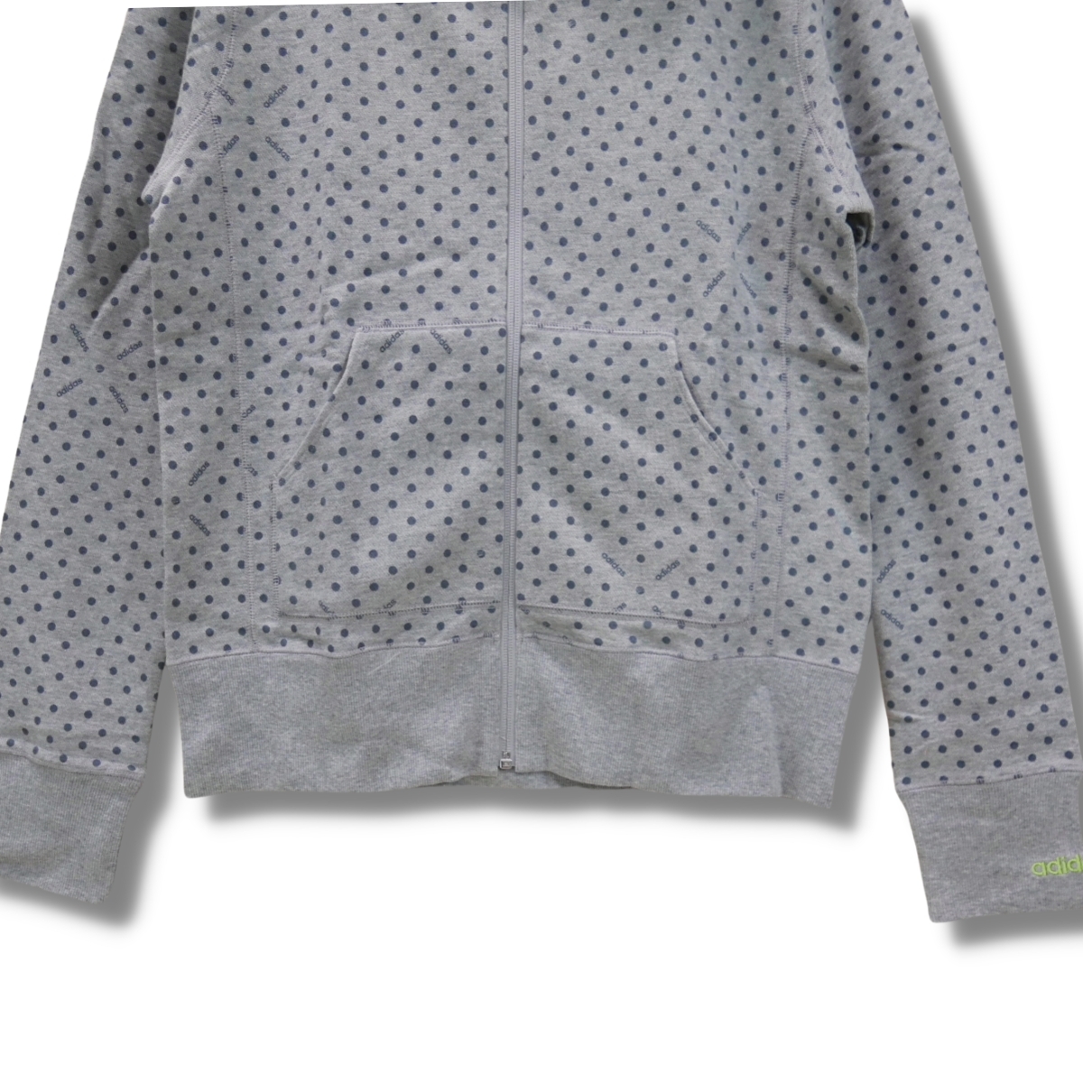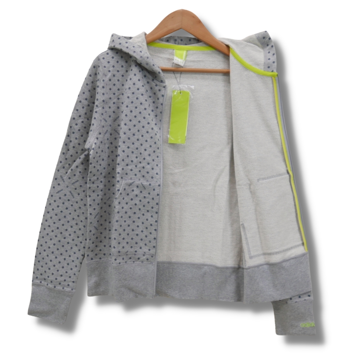 即決☆アディダス ドット スウェット ジャケット GRY/OTサイズ XLサイズ 送料無料 グレー ドット柄 ウイメンズ レディース フィットネス