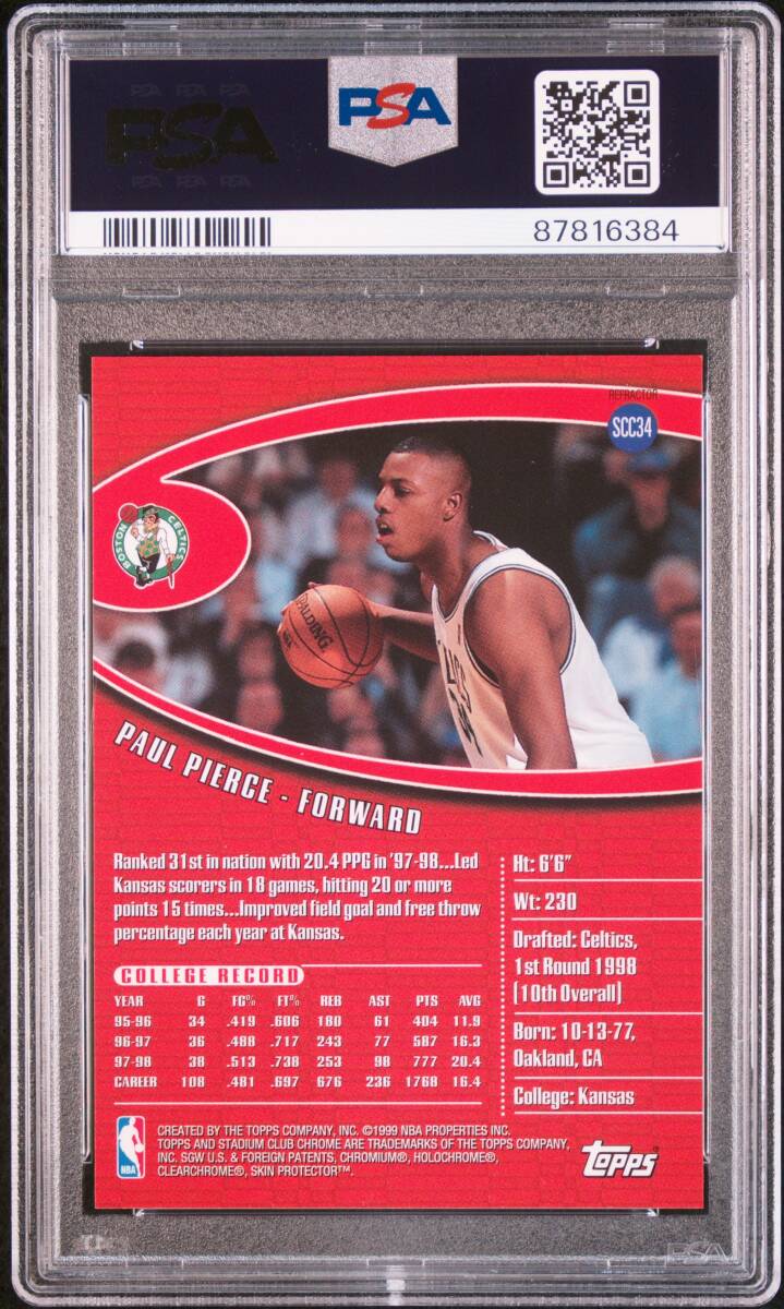 1998-99 Topps Stadium Club カードNo.SCC34 「PAUL PIERCE/ポール・ピアース」選手の