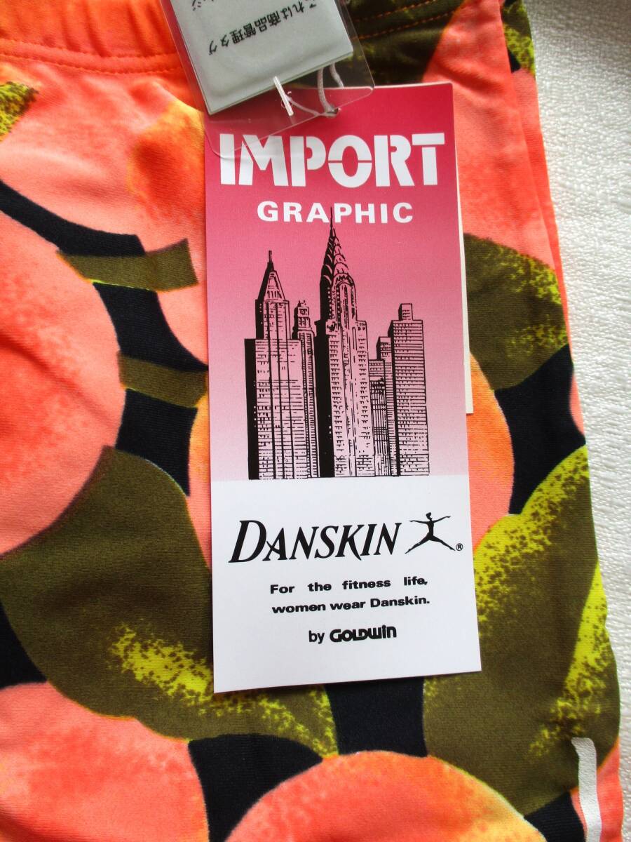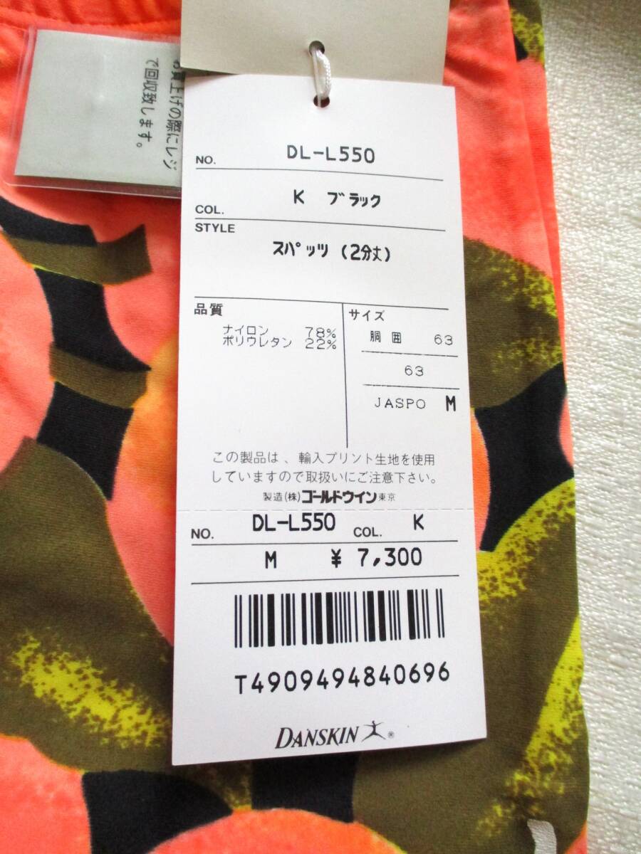 レア未使用紙タグつき Mサイズ ダンスキン danskinロゴ すべすべ 光沢 2分丈 スパッツ 日本製 レオタード goldwin 80年代エアロビ 昭和廃盤