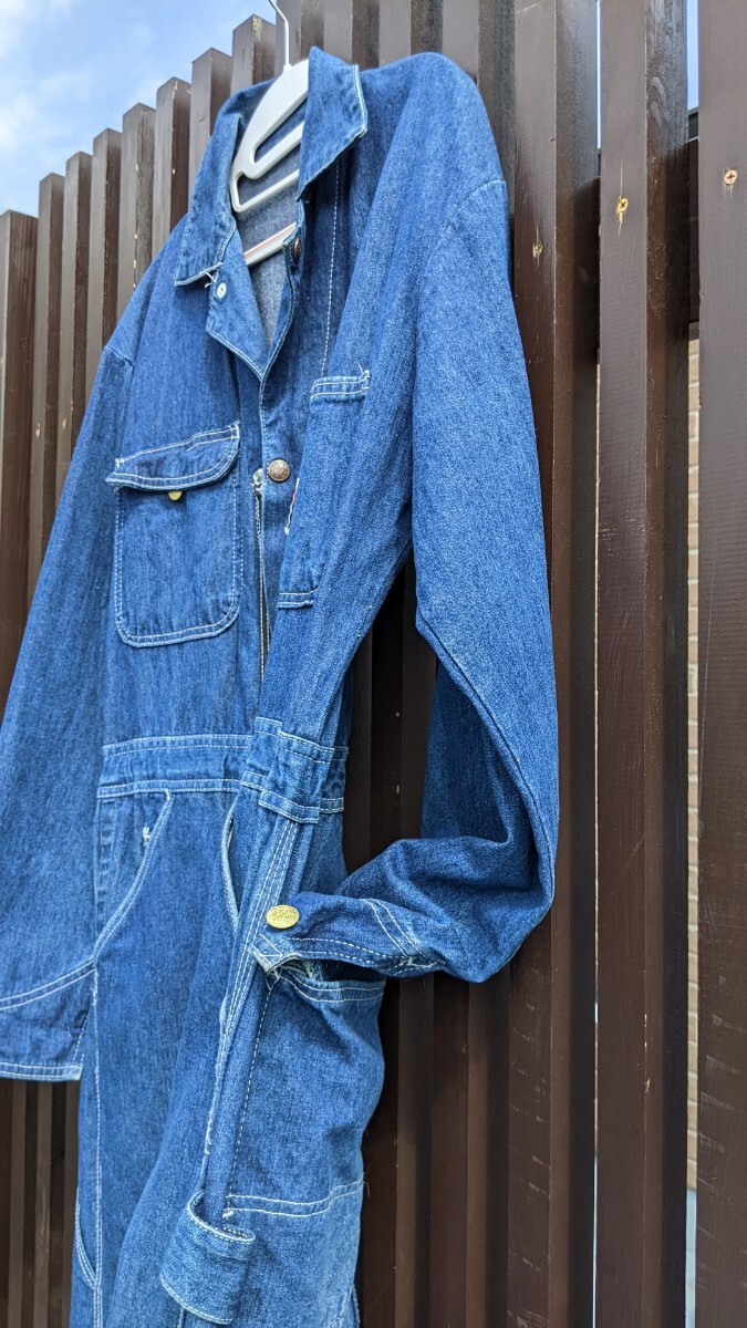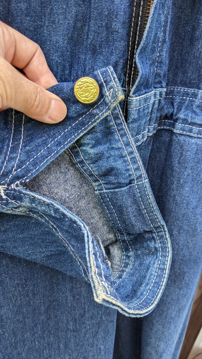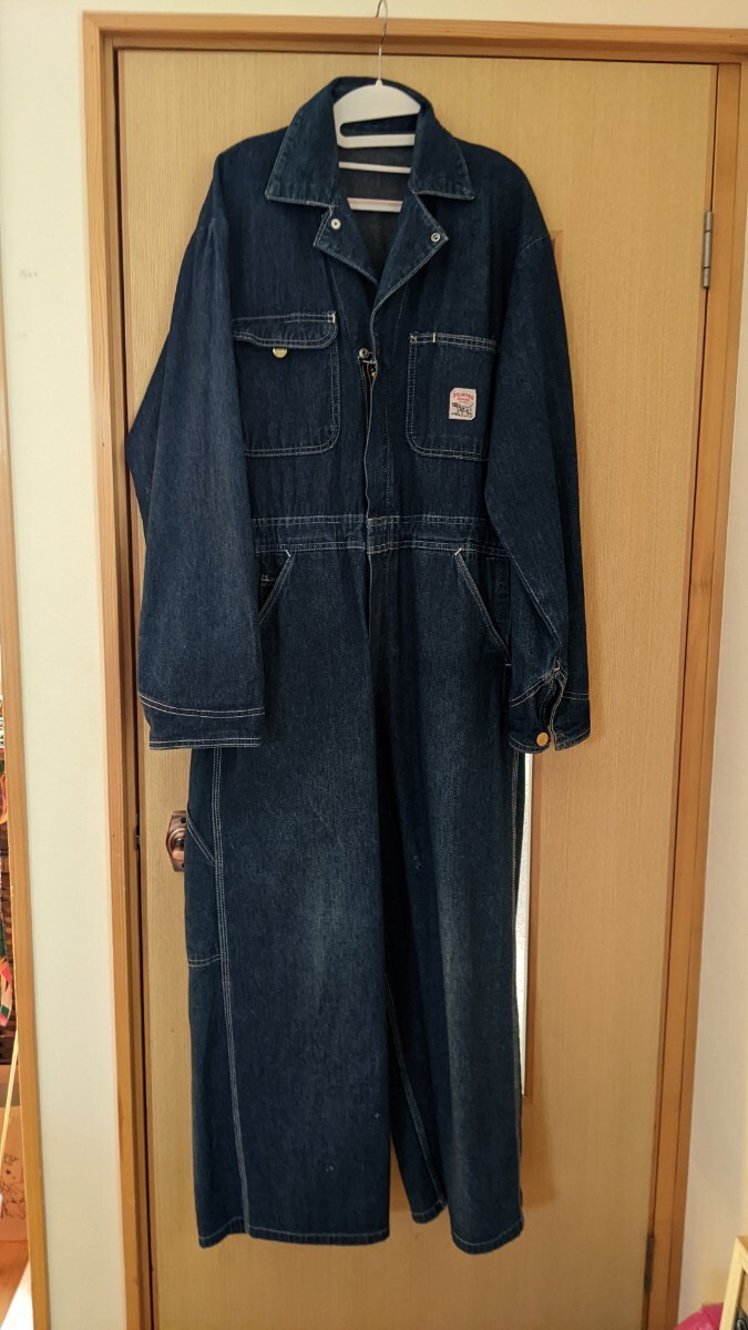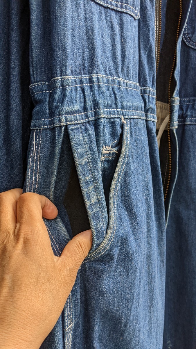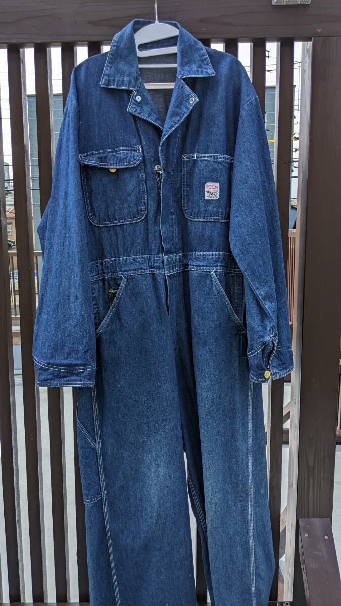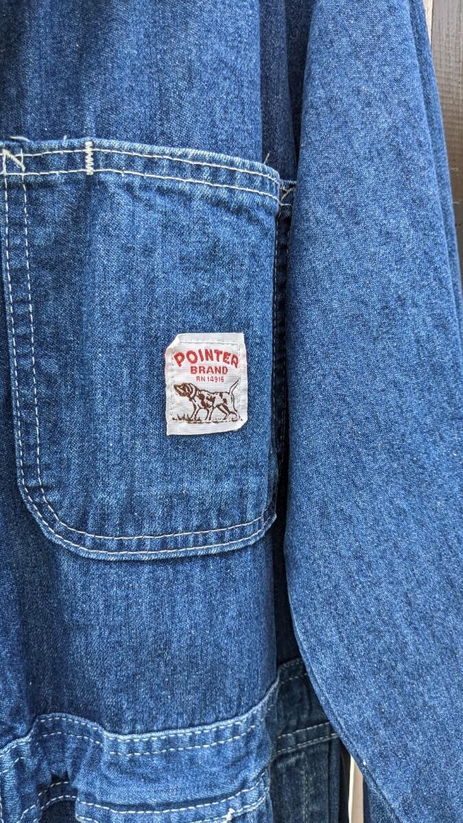 個人 出品、1990年代後半 私 本人が 購入したポインター つなぎです。サイズはおおよそ M ぐらいでしょうか。画像にもありますが ウエストを紐で調整できるようにしました。左右前ポケット 隣に通気するようなカット部分がありますが気に入らなければ自分で縫ってください。元々 空いていました。総文138、胸囲50、ウエスト平置き40、股下61、シルエット 的には、ダボッとした感じです。よろしくお願いします。