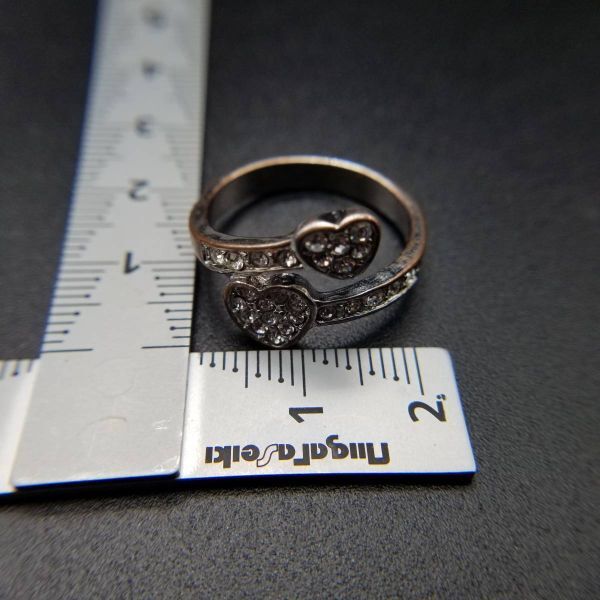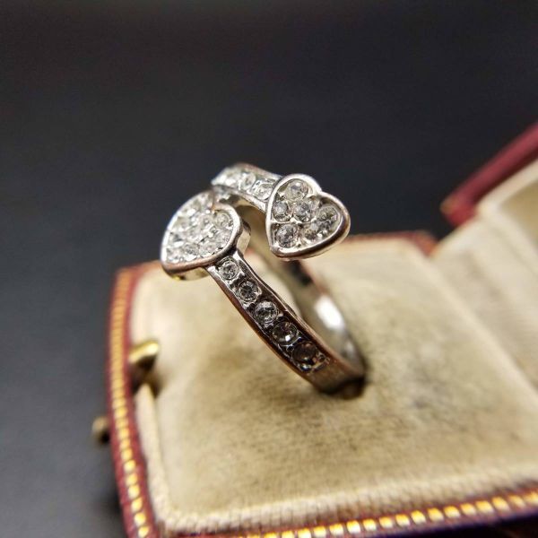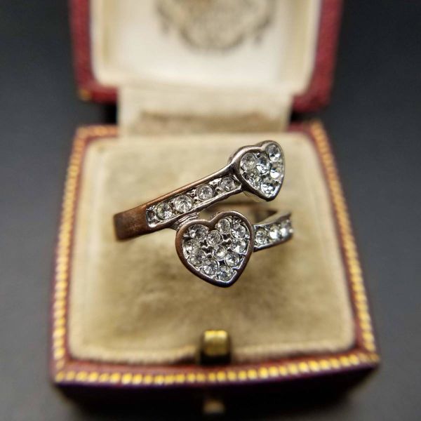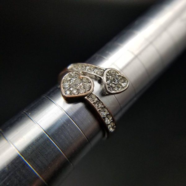 ハート ラップリング クリアラインストーン ビンテージ リング 指輪 可憐 昭和レトロ コスチュームジュエリー YNV③