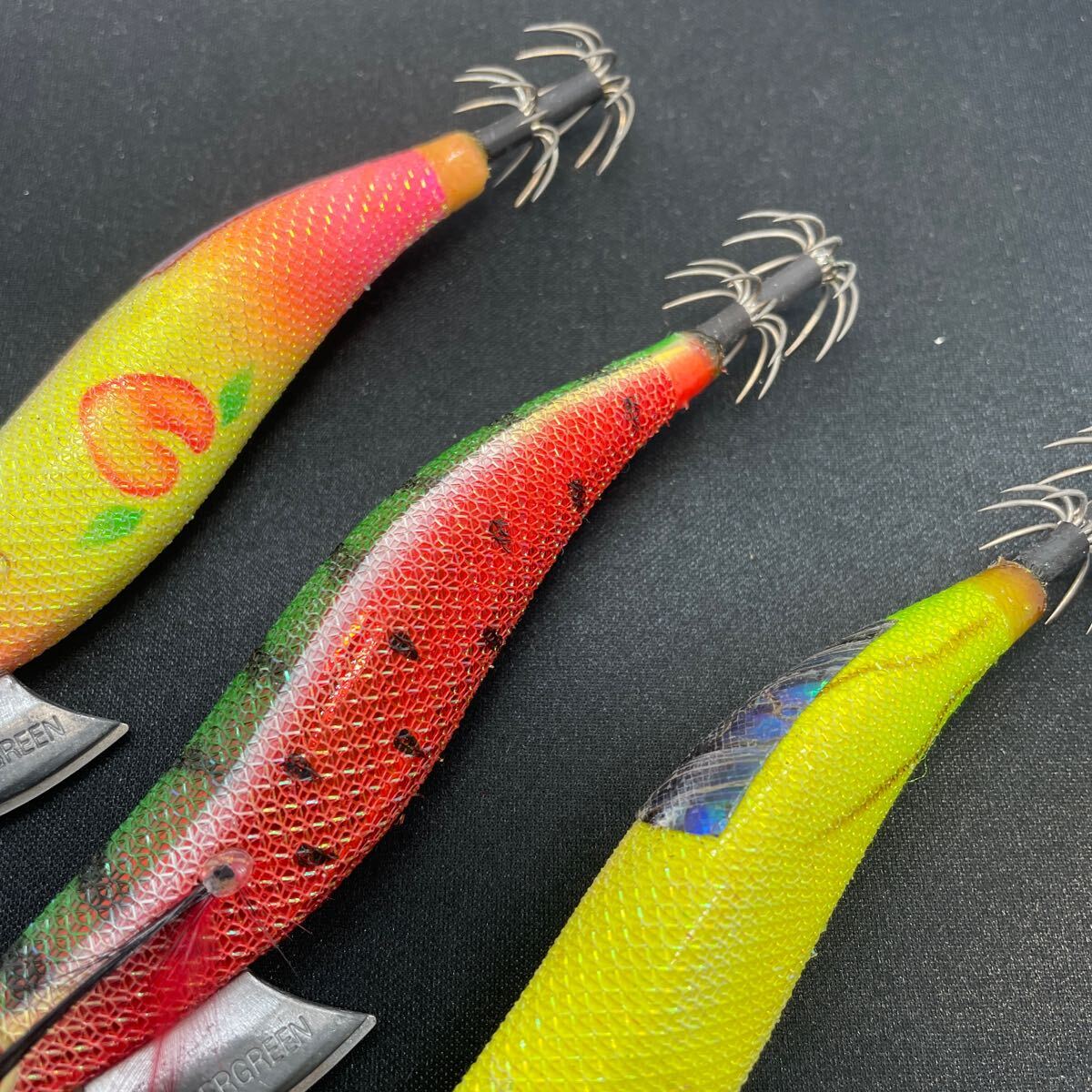 ★美品 送料無料★エバーグリーン EVERGREEN エギ番長 3.5号 3本セット フルーツ シリーズ チャートバナナ エギング egi 餌木 アオリイカ