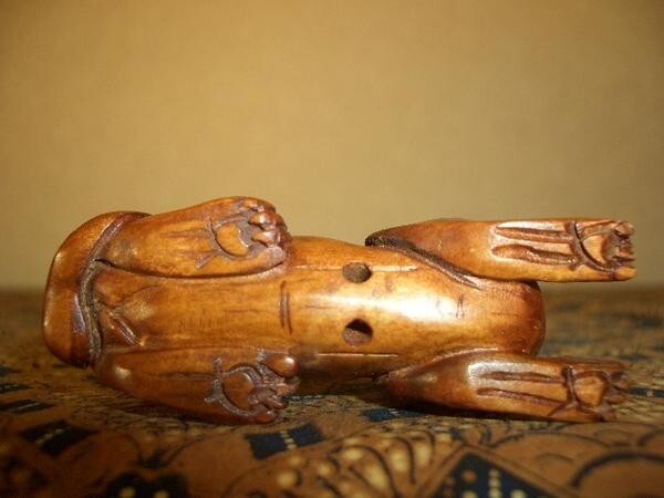 【商品説明】可愛いらしい木彫の根付。【サイズ】6.5×4センチ【平成24年8月1日出品】