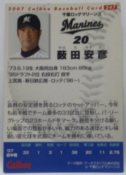 カルビープロ野球カード2007年#247【薮田 安彦(千葉ロッテ マリーンズ)】平成19年チップスおまけ食玩トレーディングカード【中古】送料込