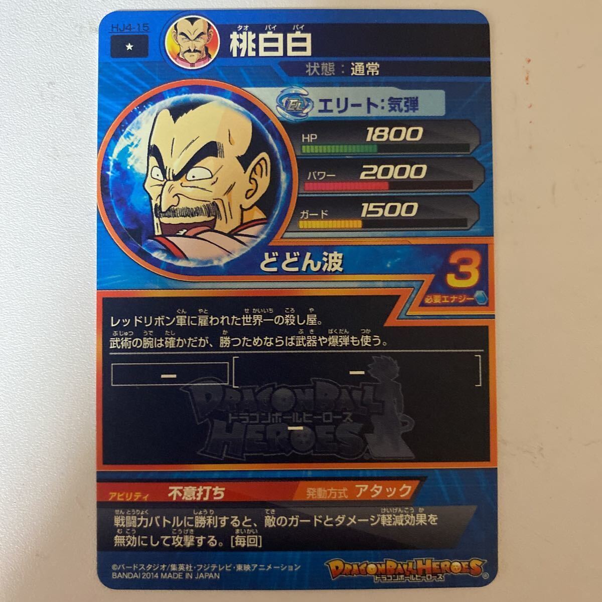 HJ4弾コモン/ 桃白白(通常)/ HJ4-15/ 技:どどん波/ ドラゴンボールヒーローズ/ レアリティ:☆/ 2014 BANDAI