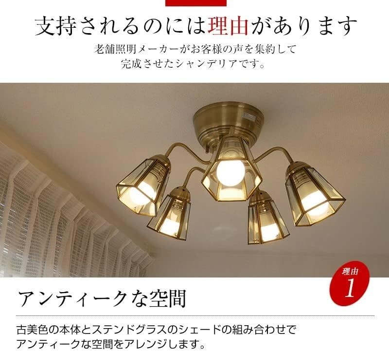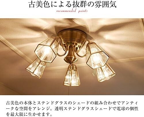 • カラー:本体:古美色、シェード:透明ガラス、真鍮 重量:本体:1.5kg(ワンタッチアダプター、取り付け金具含む)シェード5個:1.7kg
