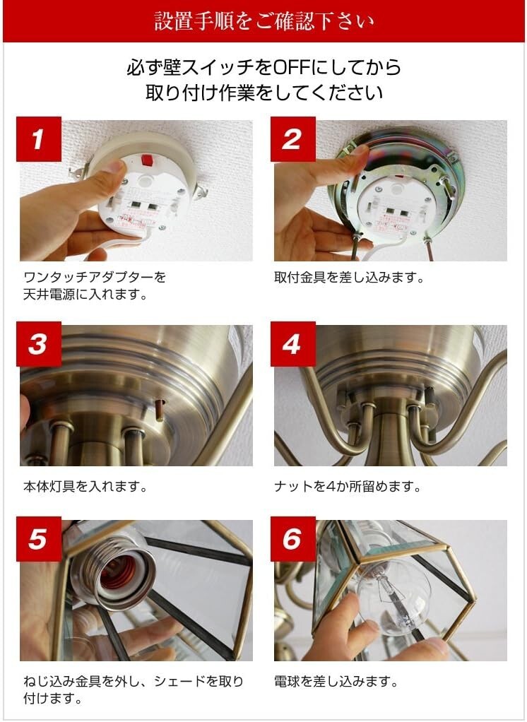 • 【天井にしっかりと固定できるシャンデリア】一般的なシャンデリアは揺れに弱く、不安な面もありますが天井にぴったりと設置することができ安全に使用可能です。