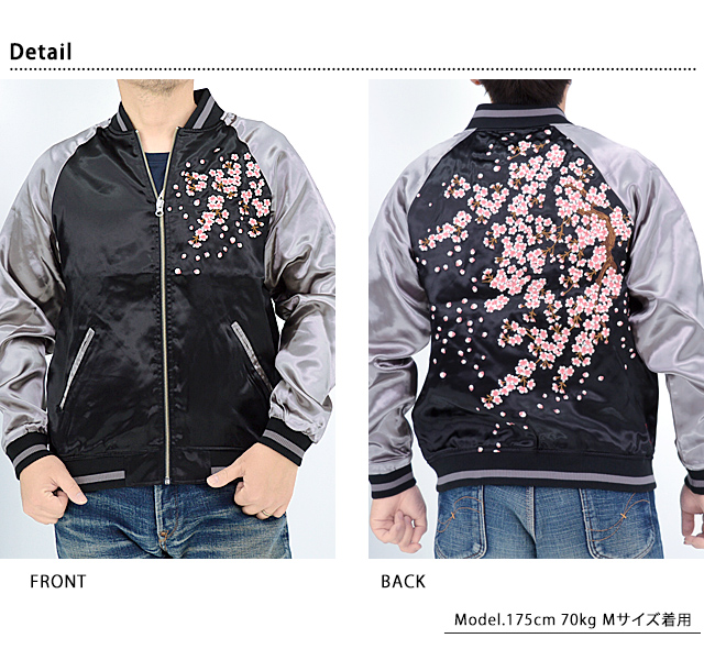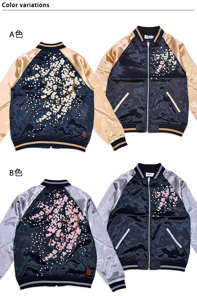絡繰魂さんから「桜吹雪スカジャン(242121)」のご紹介です。 人気の桜を使用したスカジャンが登場しました! ボディーにはレーヨンサテンを使用しており、ドレープや陰影がくっきりと現れています。 1枚持っているだけでずっと使えるスカジャン。 | ||||||||||||||||||||