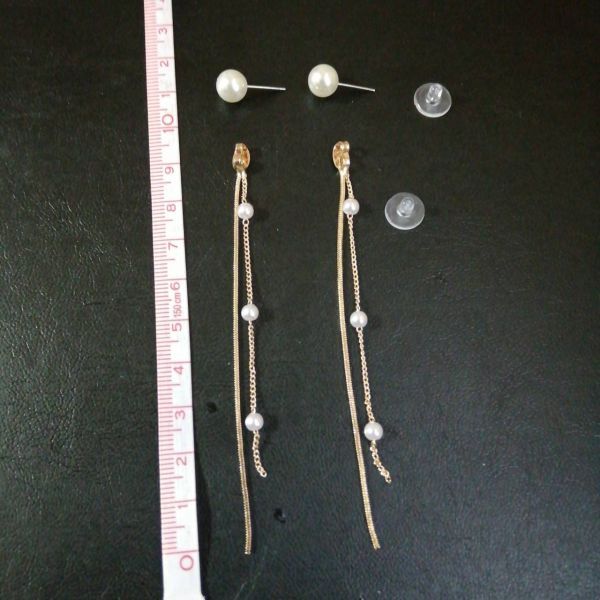 ピアス S925針 ゴールド チェーン パール ロング レディース 韓国 イヤリング イミテーション 人気 アレルギー 対策 防止 #C580-5