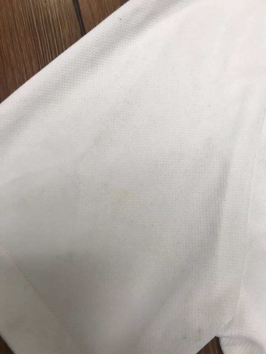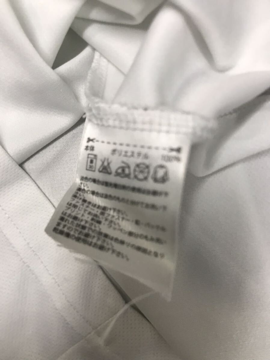 いわゆるなスポーツ系Tシャツです。少なからず使用感はあります。左袖裏に薄らシミがあります。品質タグが一部カットされています。保管都合により軽いシワや細かいほこりが多少付きます。その他目立ってダメージ、汚れはありません。使用に問題ない程度です。