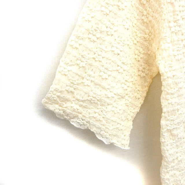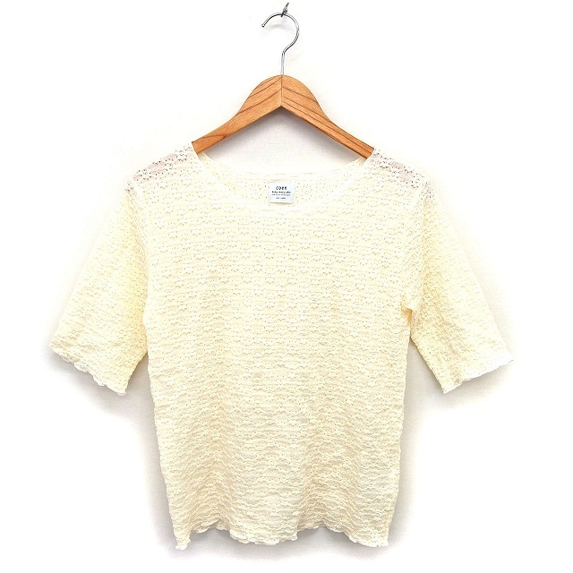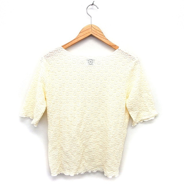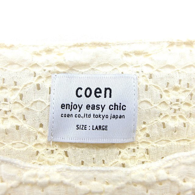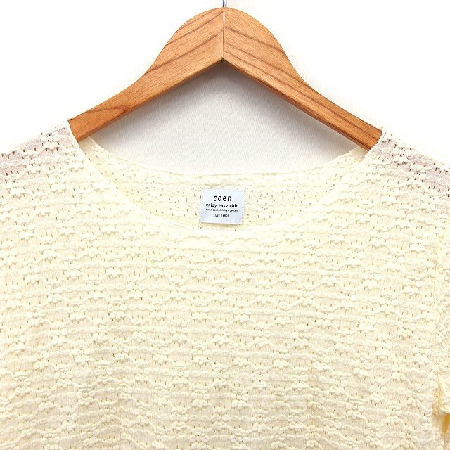 コーエン coen カットソー ジャガード 透け感 レース コットン混 ボートネック 五分袖 L オフホワイト /NT24 レディース