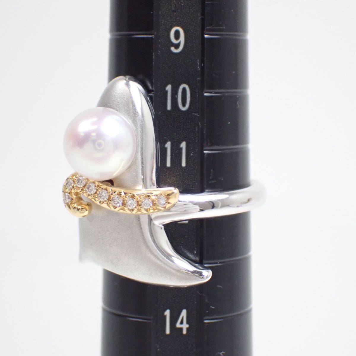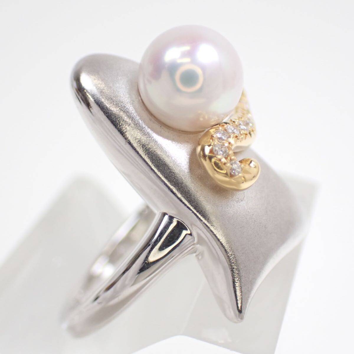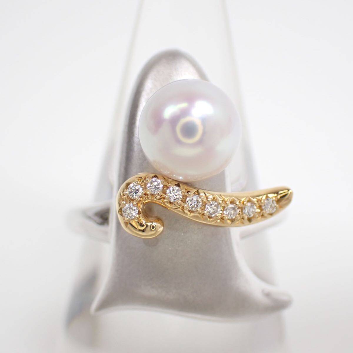 K18YG/WGを使用した田崎真珠の指輪になります。天然、傷なし、照りがいいアコヤパールを使い、重さ約9.2g、磨き仕上をして綺麗に洗浄してから発送いたしますので、気持ち良くご使用いただける事と思います。