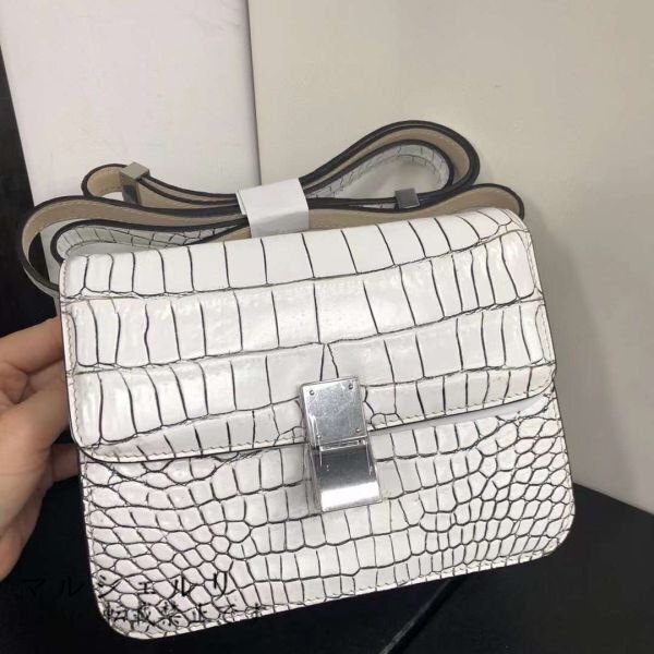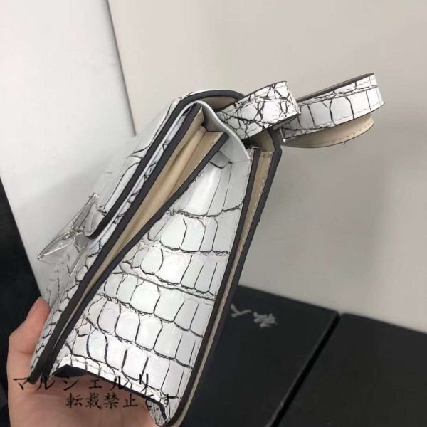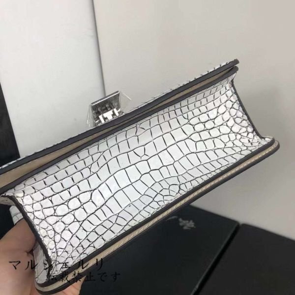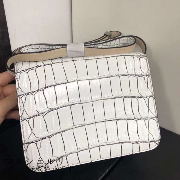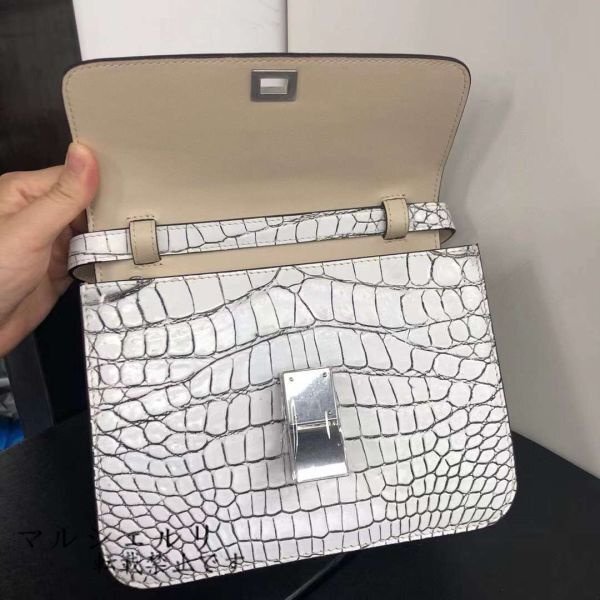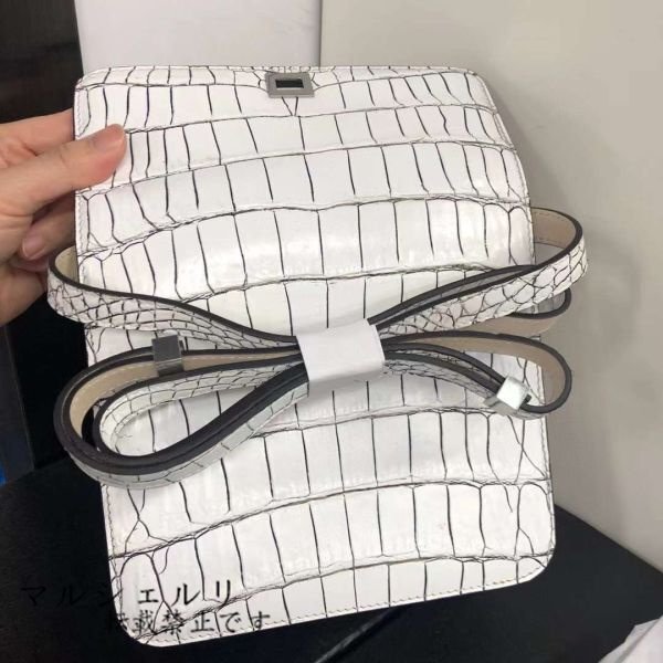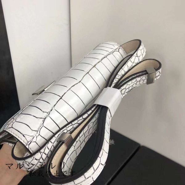 マット仕上げ クロコダイル本革 ワニ革 本物 レディースバッグ センター取り ショルダーバッグ 肩掛け 斜めがけ 夏バッグ 目地染 ホワイト