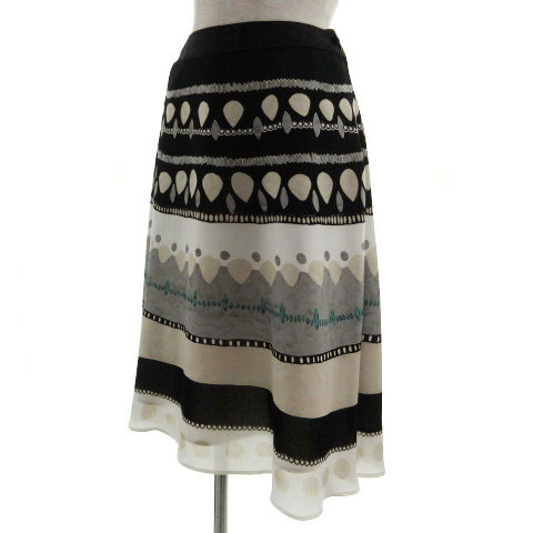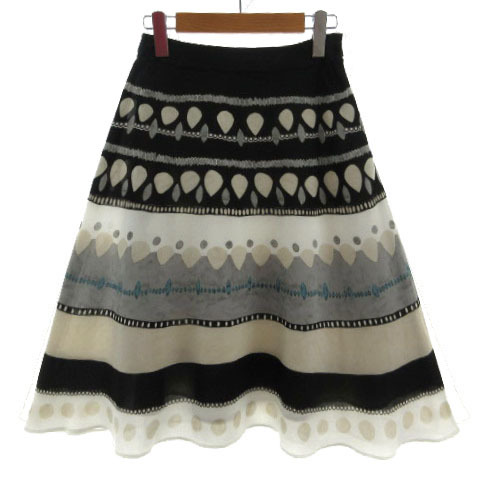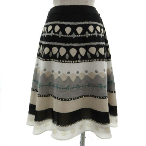トゥービーシック TO BE CHIC スカート フレア ミディ丈 日本製 総柄 ブラック 黒 ベージュ マルチカラー 40 レディース