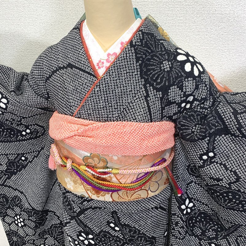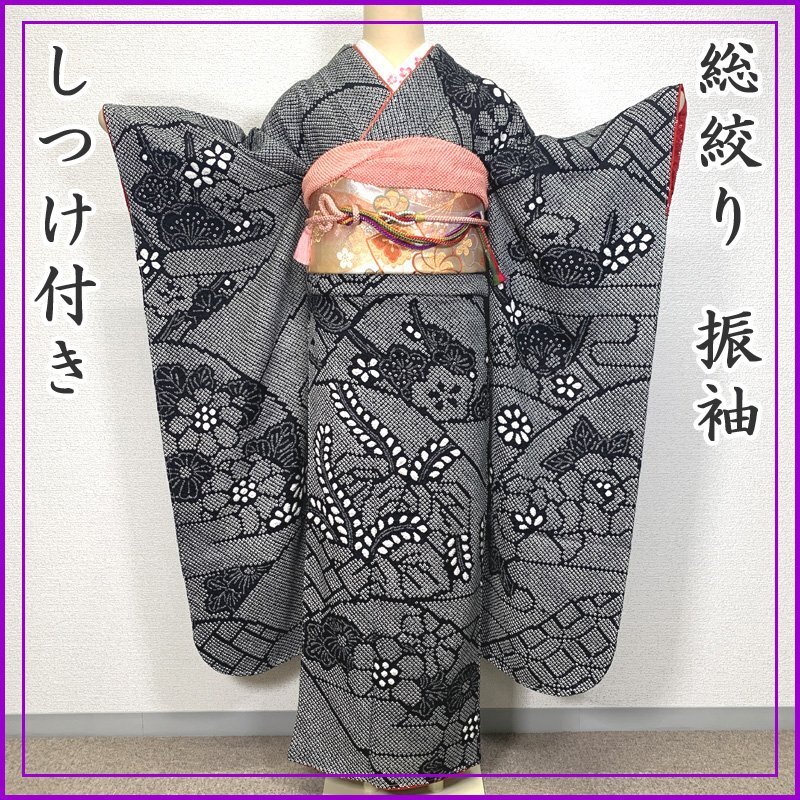 〇総絞り 振袖 牡丹 菊 梅 松〇しつけ付き美品 成人式 結婚式 (No.gjd) 牡丹や菊、梅、松などが染め出された総絞りの振袖です。色合いがシンプルなので、合わせる帯や小物によってコーディネートの幅が広がる逸品です。 (画像の袋帯312y39、重ね衿、帯締め、帯揚げは参考商品ですが、在庫がある場合に限り+12000円で振袖とセットでお譲りすること可能です。半衿(中古美品)は+1000円です。) しつけ糸がついています。目立つようなシミ・ダメージもなく美品です。 【素材】正絹 【色】黒 *モニターによって色味は実際と異なる場合がございます。 【サイズ】