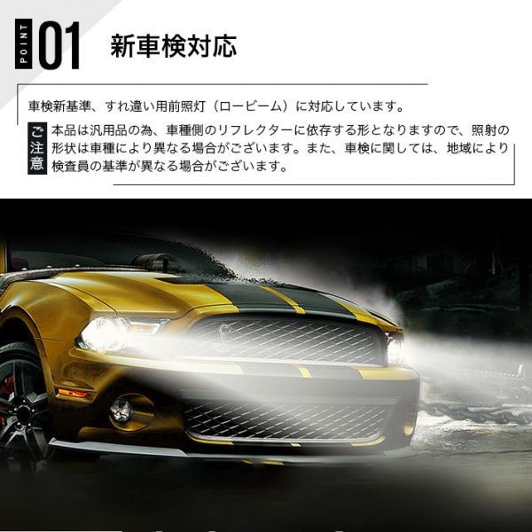 【新車検対応】車検新基準、すれ違い用前照灯(ロービーム)に対応しています。※ご注意※ 本品は汎用品の為、車種側のリフレクターに依存する形となりますので、照射の形状は車種により異なる場合がございます。また、車検に関しては、地域により検査員の基準が異なる場合がございます。