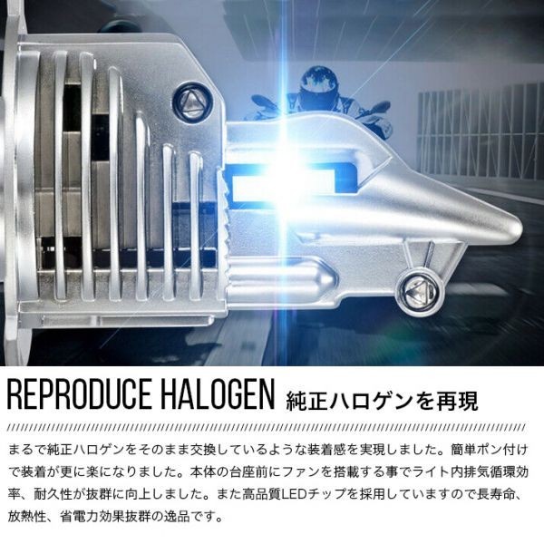 【最新モデル】完全に純正ハロゲンを再現することに成功した新型LEDヘッドライト!インバータ&ファン一体型なのでこんなにコンパクト!まるで純正ハロゲンをそのまま交換しているような装着感を実現しました。簡単ポン付けで装着が更に楽になりました。本体の台座前にファンを搭載する事でライト内排気循環効率、耐久性が抜群に向上しました。また高品質LEDチップを採用していますので長寿命、放熱性、省電力効果抜群の逸品です。