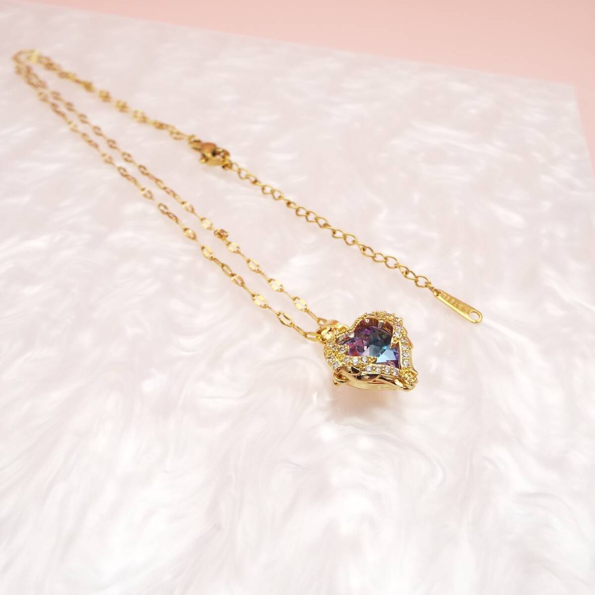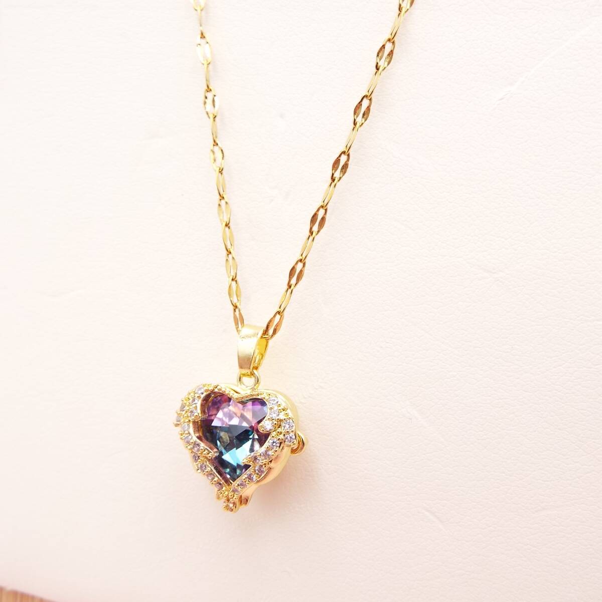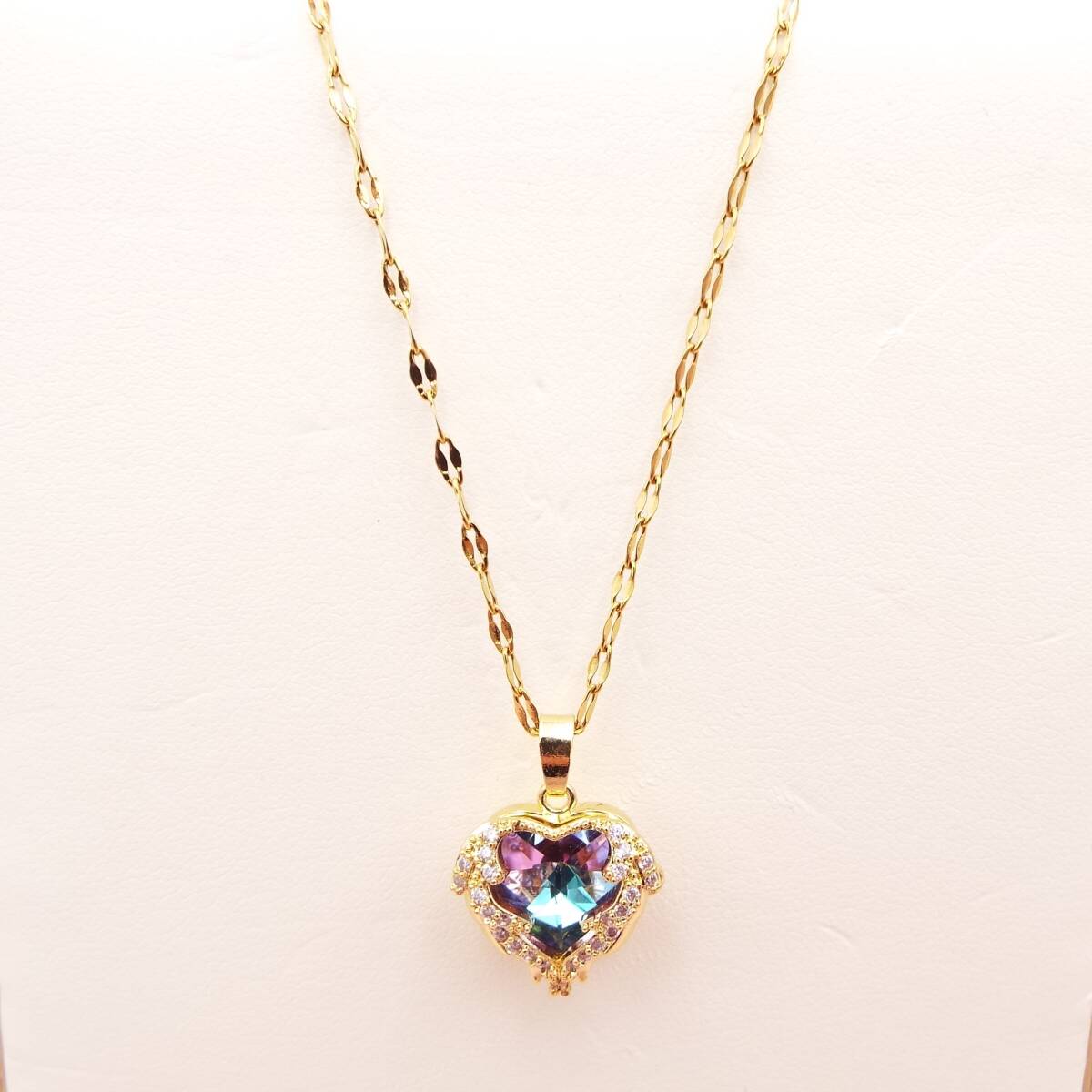 ミスティックトパーズ ハート ネックレス パープル×ゴールド