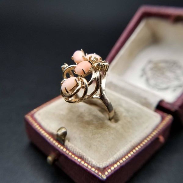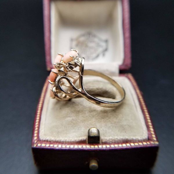 ピンク オレンジカラー ストーン ゴールドトーン 米国 アールデコ ヴィンテージ リング 指輪 昭和レトロ コスチュームジュエリー AU956