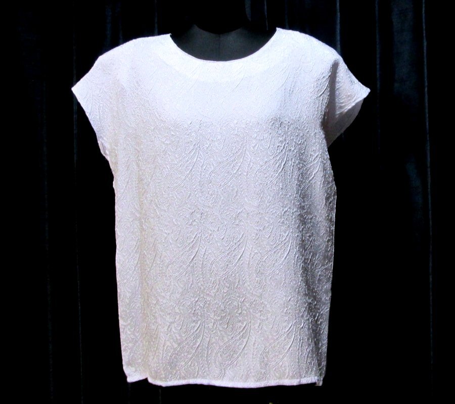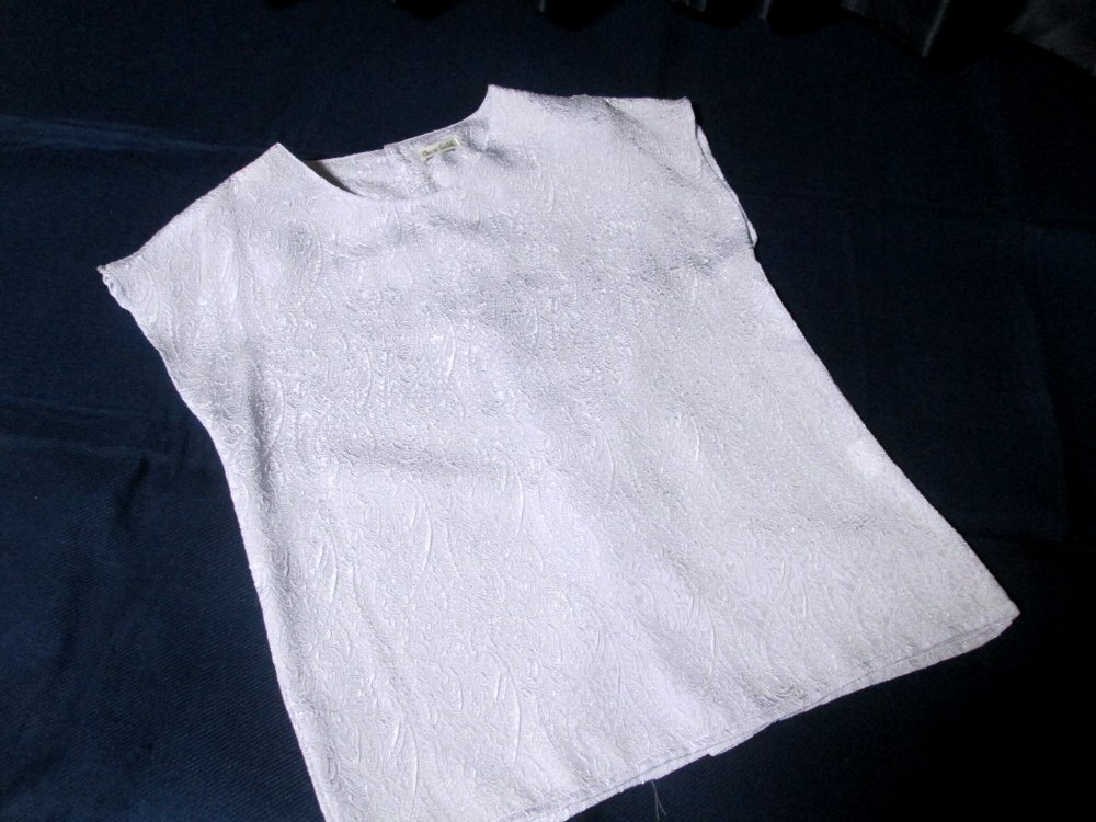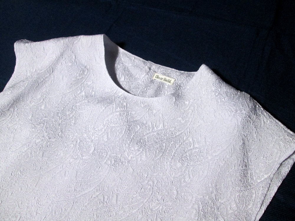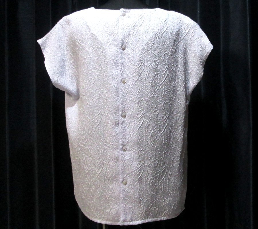 【Clover Social】日本製・淡いパープルグレー系・ペーズリー柄・肩パット付・フレンチスリーブ風ノースリーブ袖・カットソー・9号サイズ!
