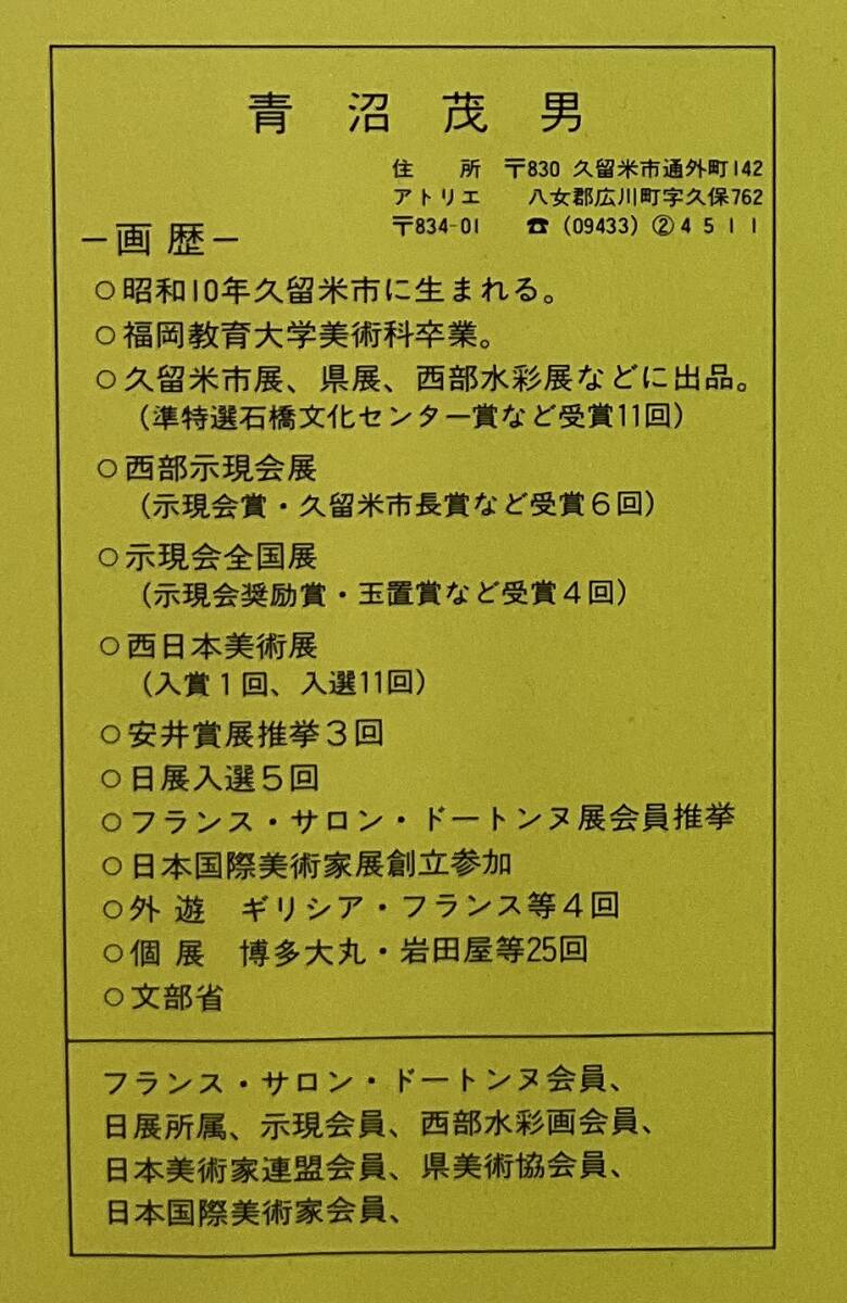 本名、青沼茂男。福岡教育大学卒業後、石橋美術館学芸員補を経て高校教員となる。
