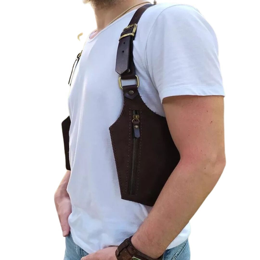 【ブラウン】ハーネス ダブルショルダーバッグ ブラックorブラウン スチームパンク ハーネスベルト おしゃれ スーツ 花婿 撮影 結婚式 司会