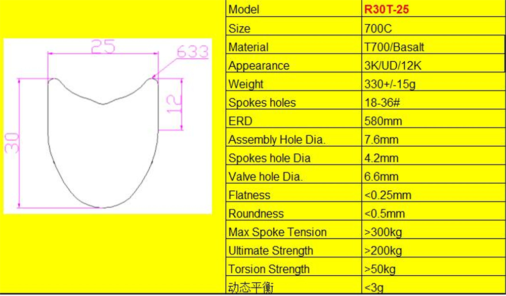 ロードバイクリム 1本 カーボンリム 700C 高30mm 自転車リム チューブラーリム 炭素繊維リム