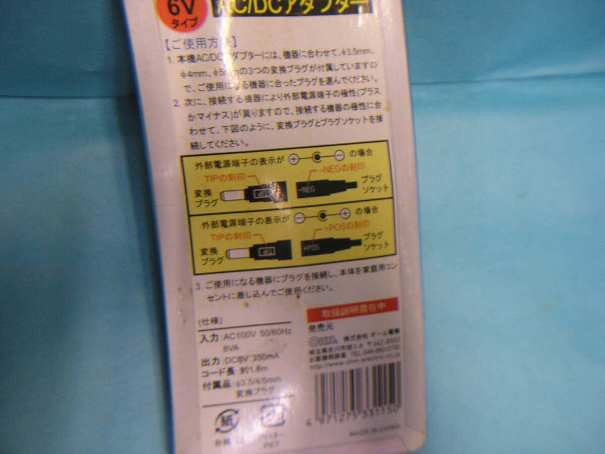 AC/DC アダプタ- ■変換ジャック ■出力6Vタイプ ■Audio comm ■オ-ム電機 ■36J-D06454【保管 C】