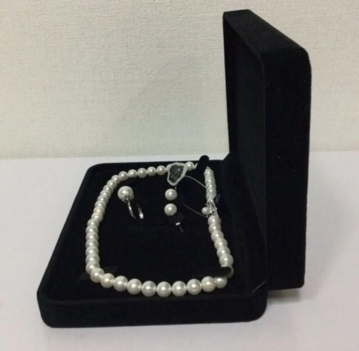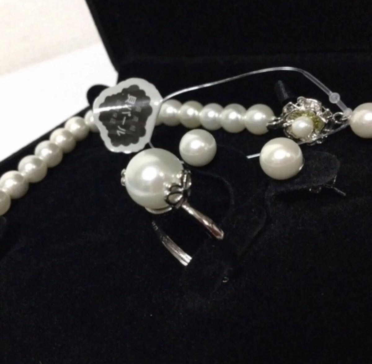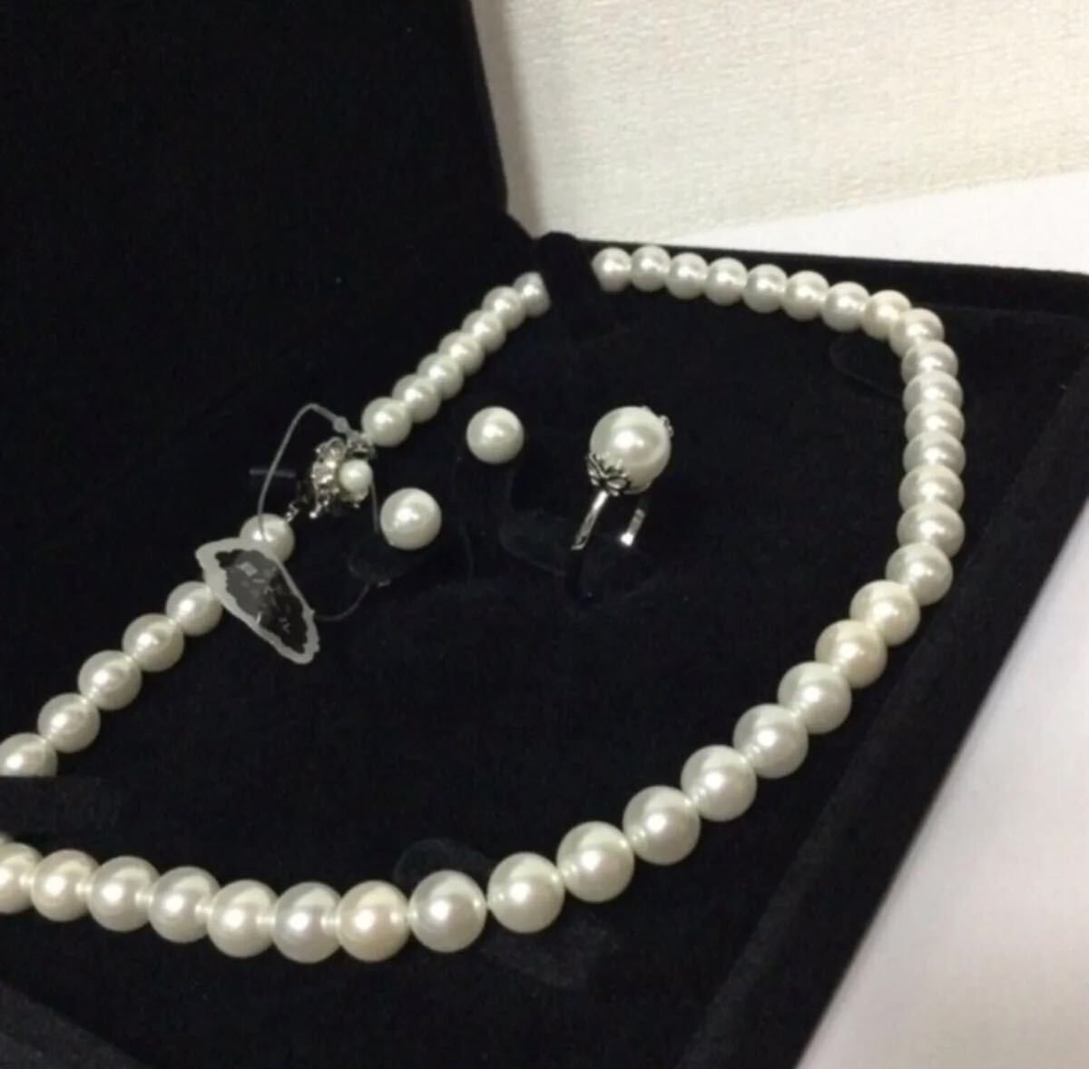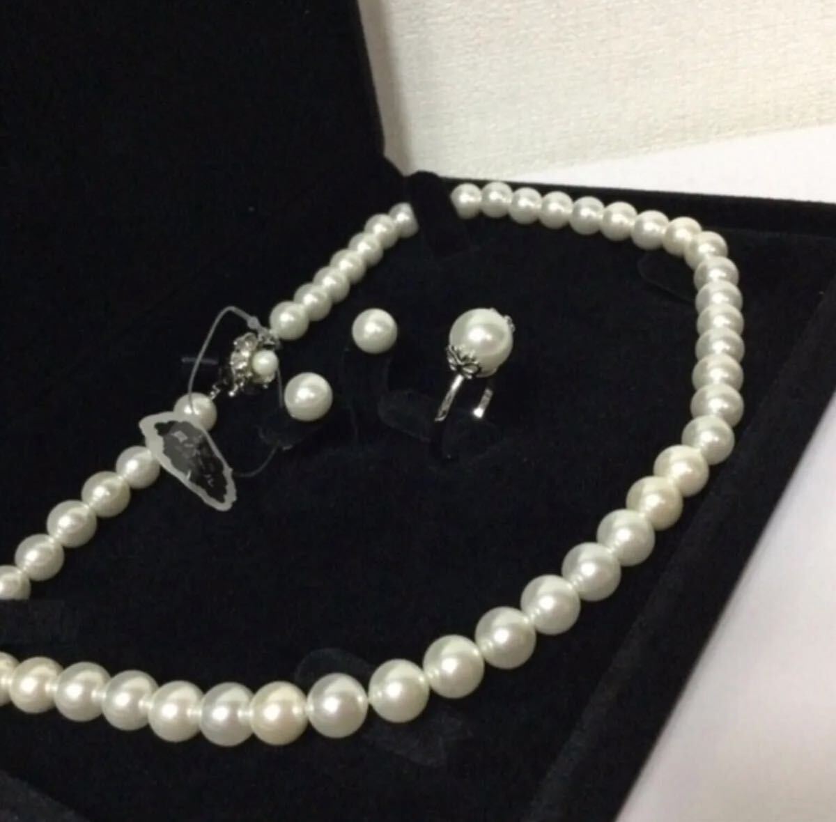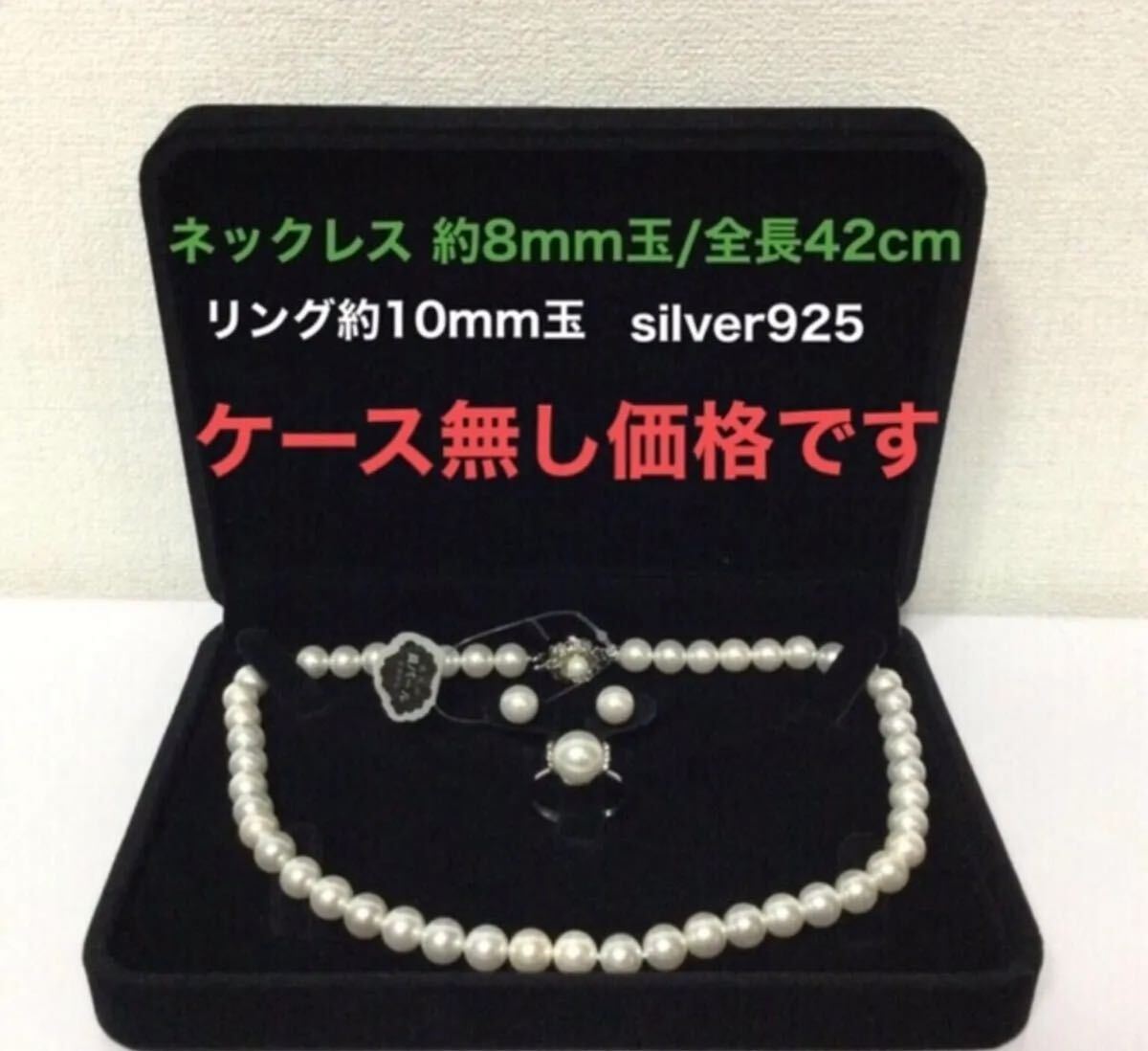 最高級本貝パール ネックレス8mm全長約42cm/ピアス 指輪3点セット イヤリングに変更も可能です/ケース無し価格です。