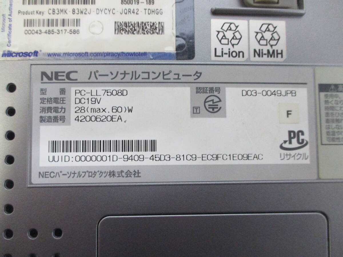 L27       NEC  LaVie  LL750/8 HDD レス  ノートPC