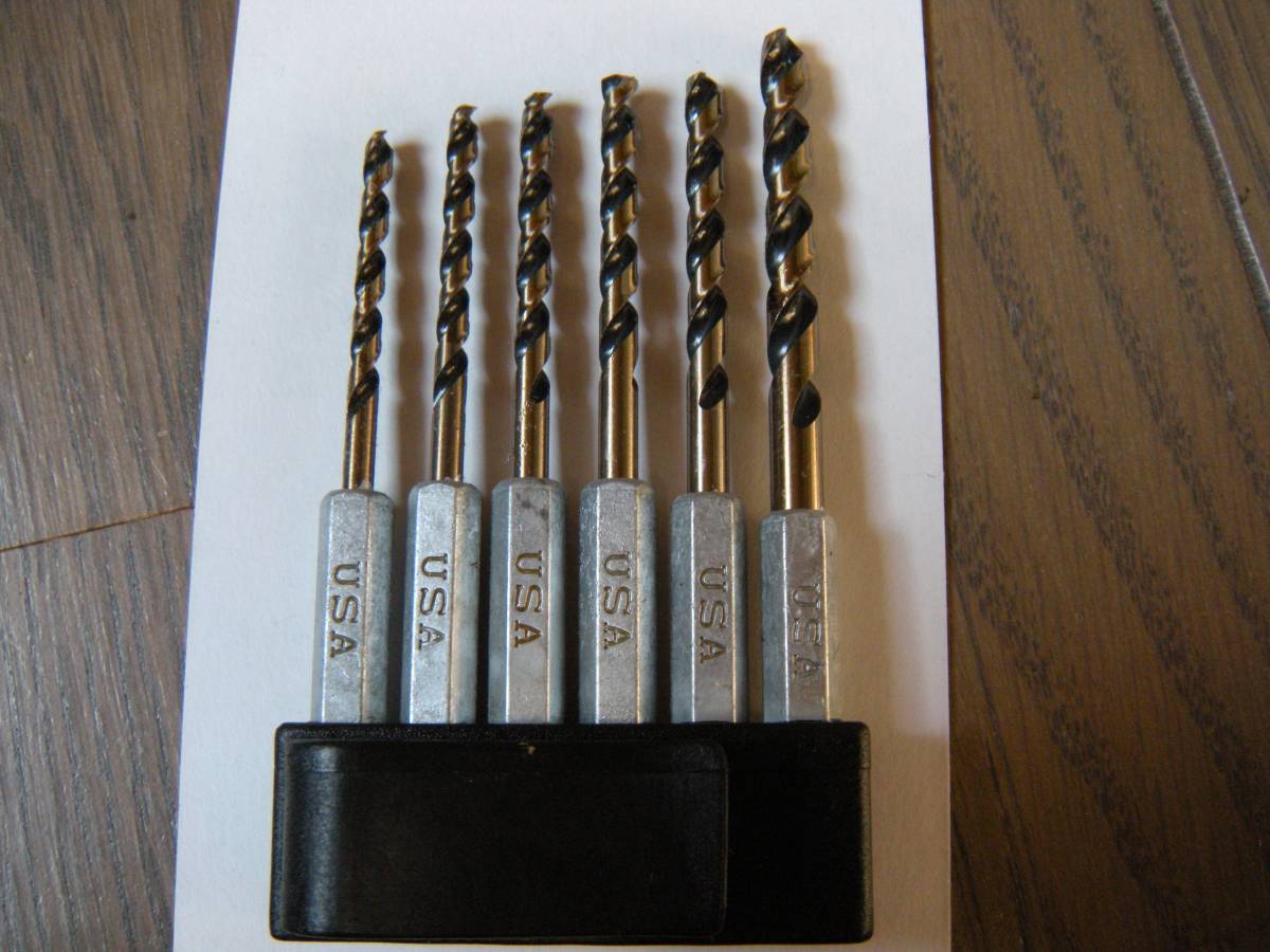 電動ドリルに使用可能!綺麗で丈夫なチタンコーティンググ/ブラックコーティングの6.35mm 6本SETドリルセットです。 USA製 頑丈です。