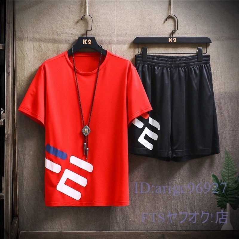 S876☆新品メンズトレーナースポーツウエアセットアップスウェット上下セットジャージTシャツハーフパンツショートパンツ黑M~4XL
