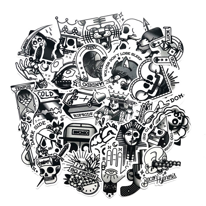 30枚 モノクロ ドクロ ステッカー シール 詰め合わせ 車 防水 耐水 0343