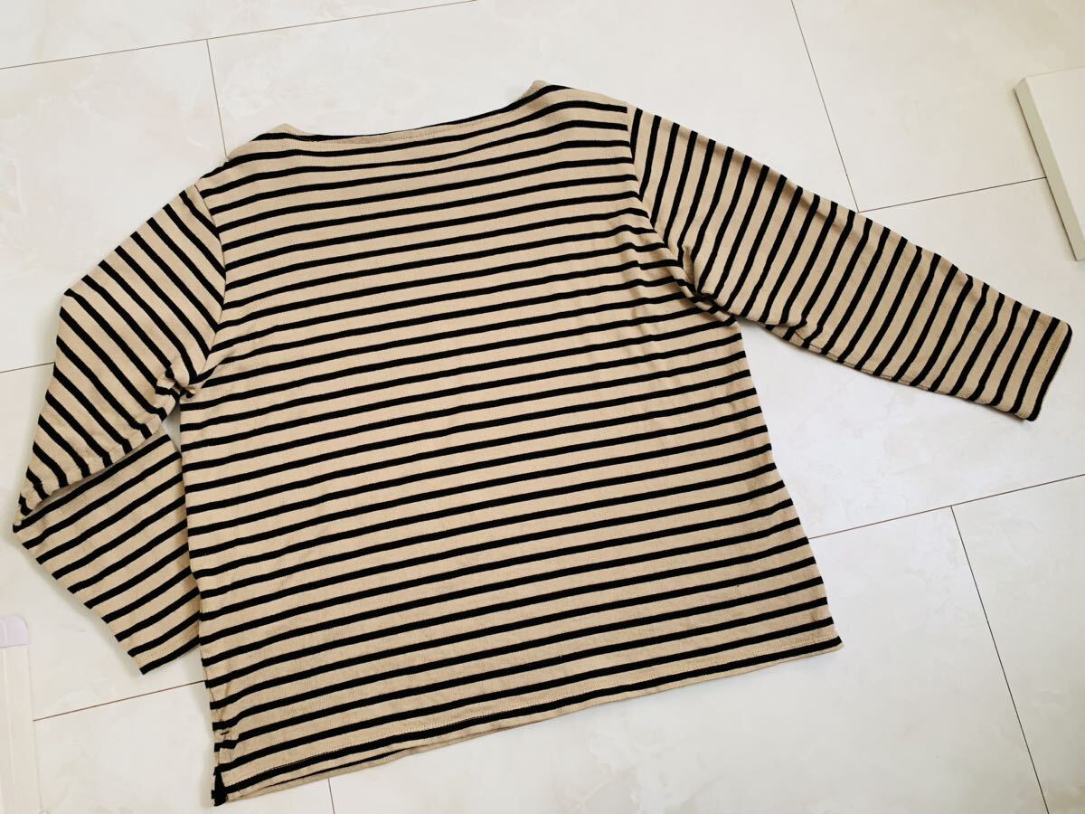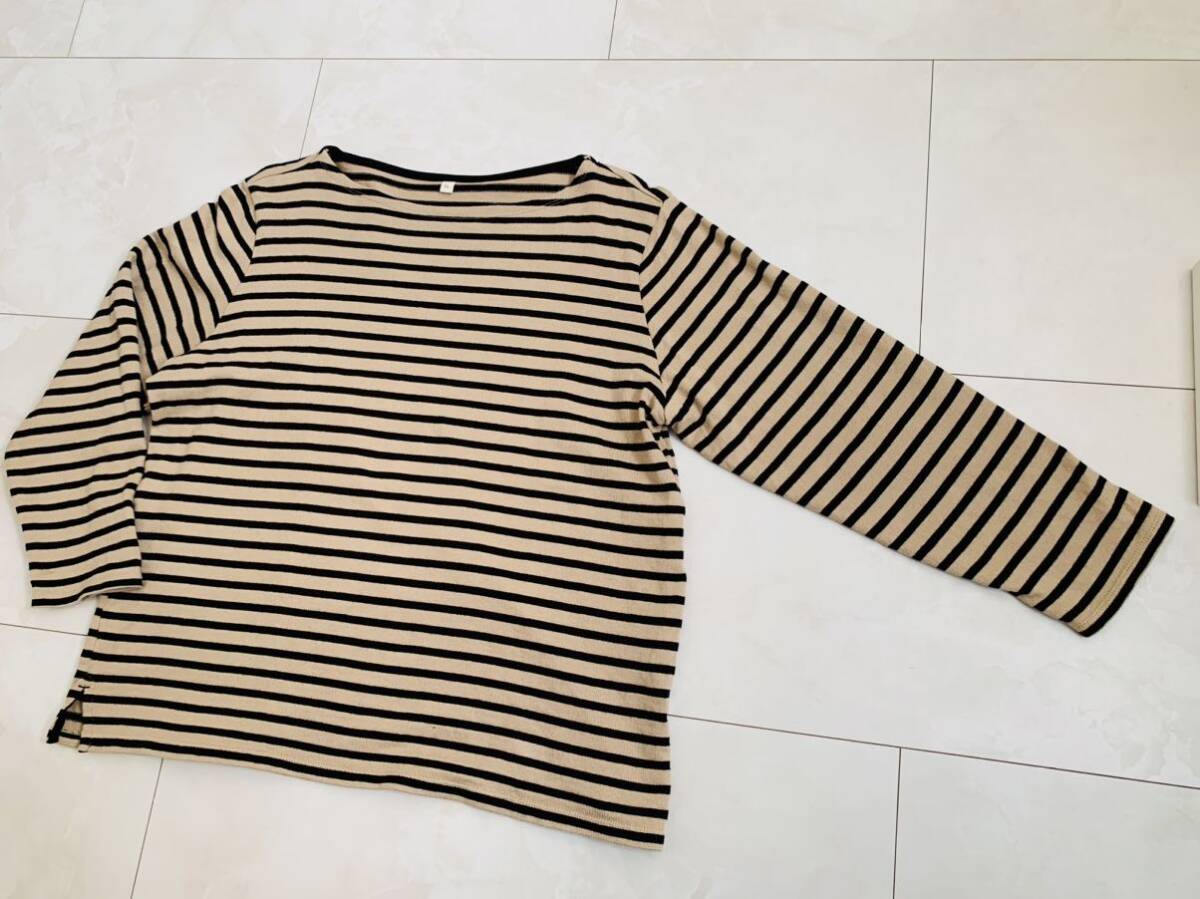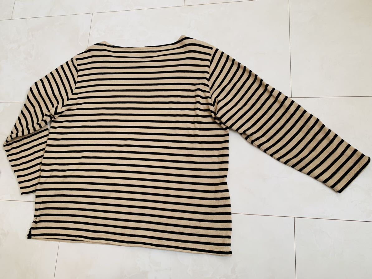 ★ボーダー柄のおしゃれな七分?八分袖の長袖カットソーです。 色は黒色/ブラックです。 サイズはLLサイズです。 平置きサイズで、身幅約53cm・着丈約56.5cmです。 1~2回の使用ですのでキレイですが USD品の為、使用感や毛玉などがございます。 その為、新品・完璧を求められる方や神経質な方は 入札をお控え下さい。 | |||