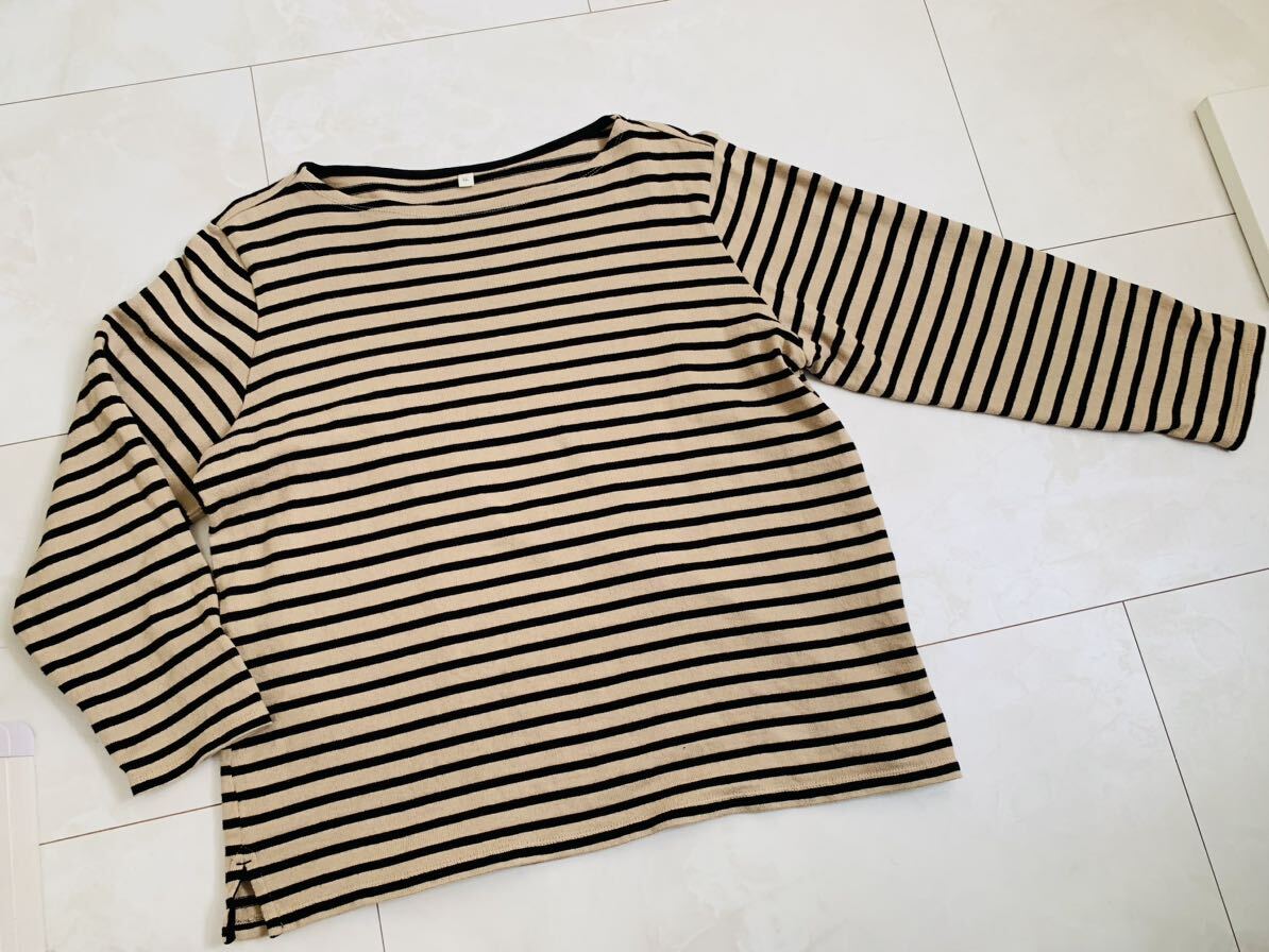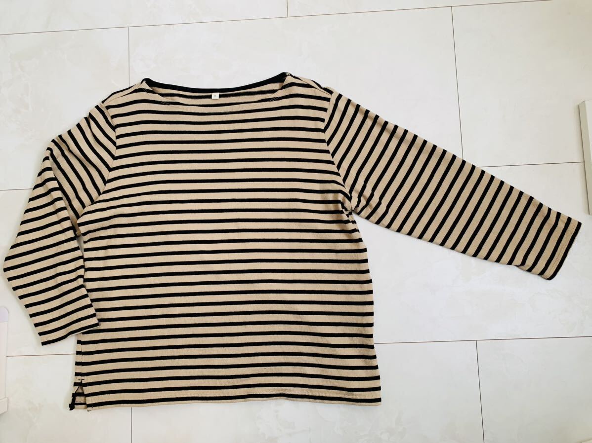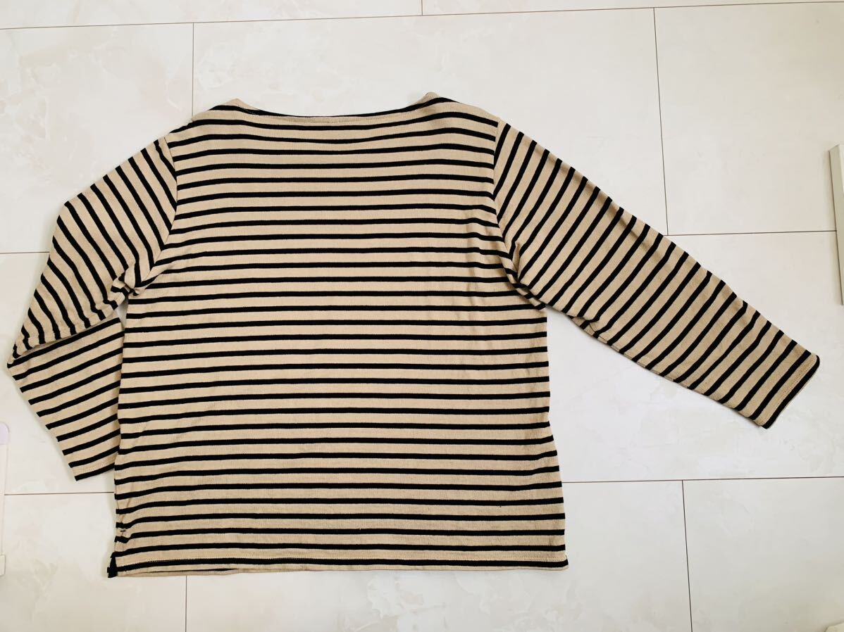★ボーダー柄のおしゃれな七分?八分袖の長袖カットソーです。 色は黒色/ブラックです。 サイズはLLサイズです。 平置きサイズで、身幅約53cm・着丈約56.5cmです。 1~2回の使用ですのでキレイですが USD品の為、使用感や毛玉などがございます。 その為、新品・完璧を求められる方や神経質な方は 入札をお控え下さい。 | |||