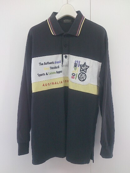 ◇ ◎ SIMPSON 刺繍 鹿の子 長袖 ポロシャツ サイズ LL ブラック メンズ P