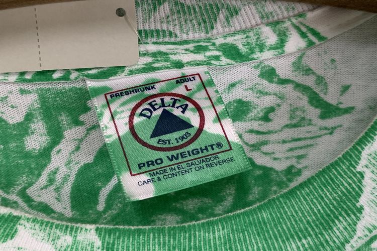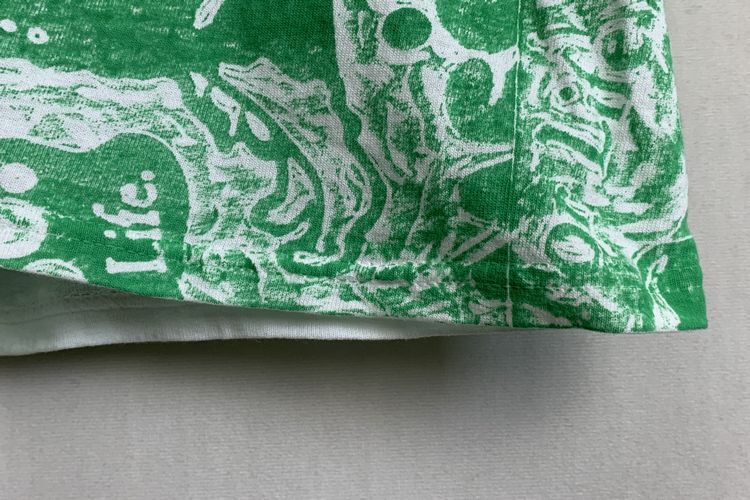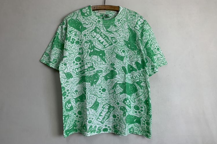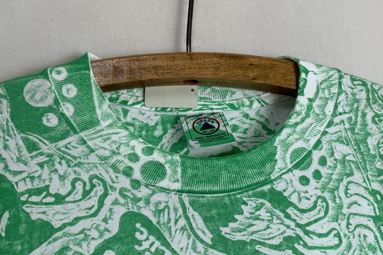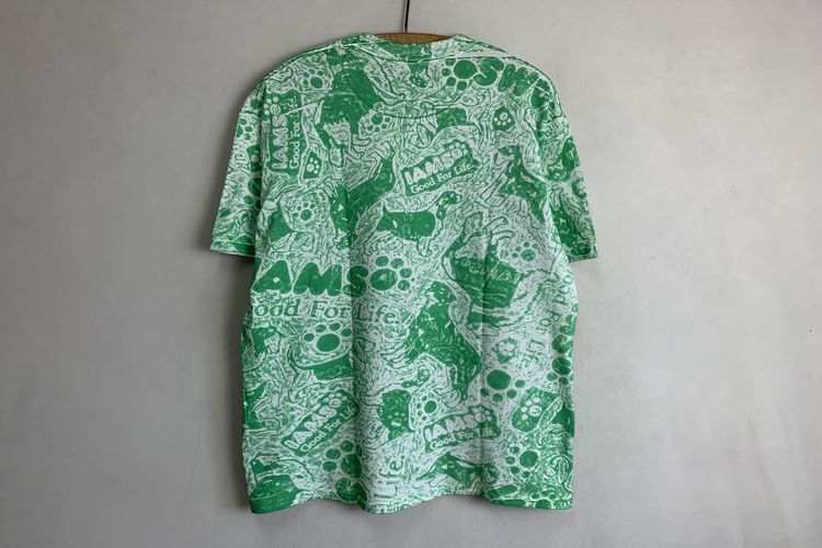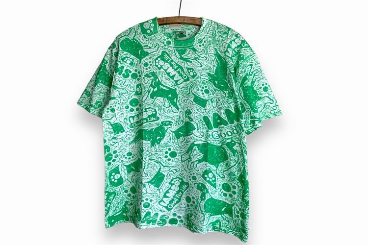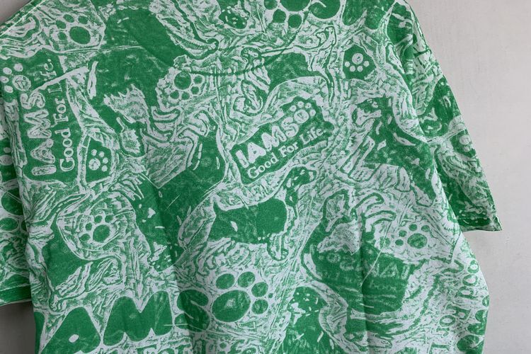 デッドストック90sビンテージDELTAデルタオールコットンIAMSアイムス企業物総柄プリントTシャツLホワイトベースグリーンDogドッグ犬h24071