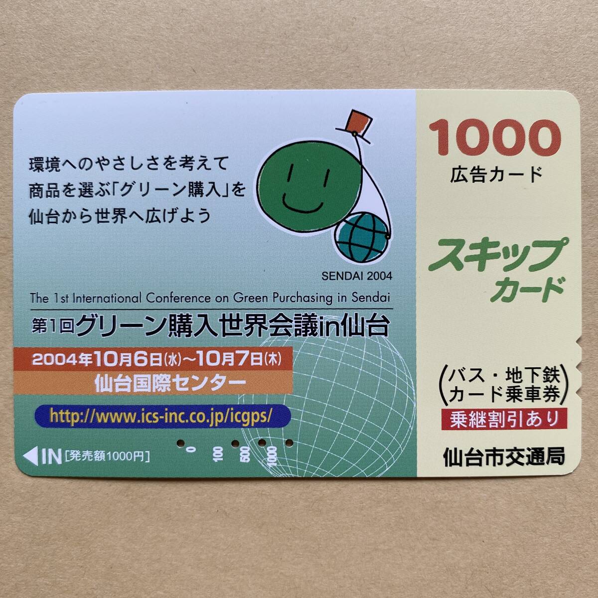 【使用済】 スキップカード 仙台市交通局 第1回グリーン購入世界会議in仙台