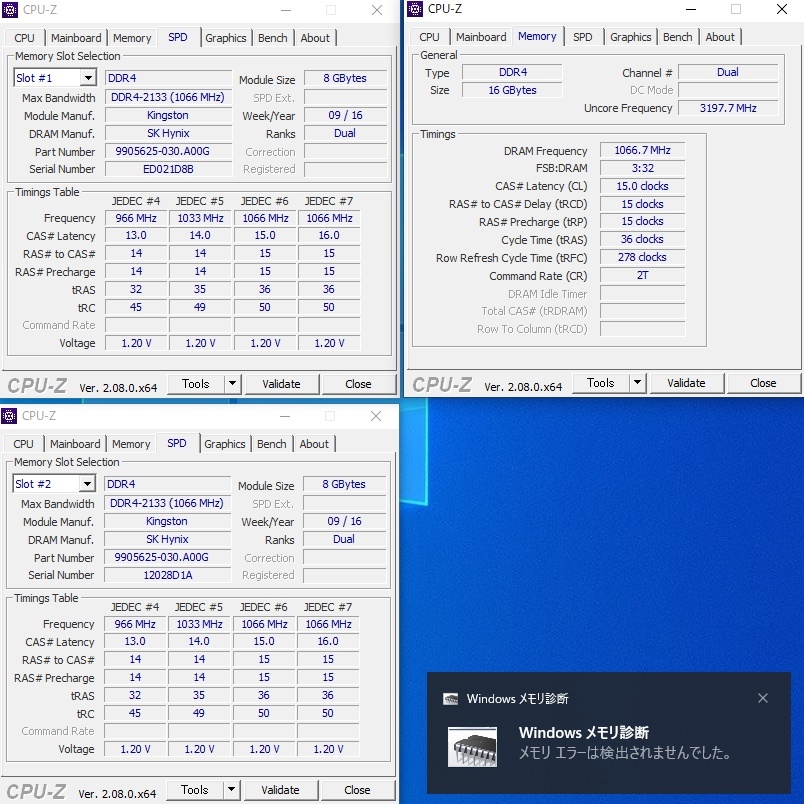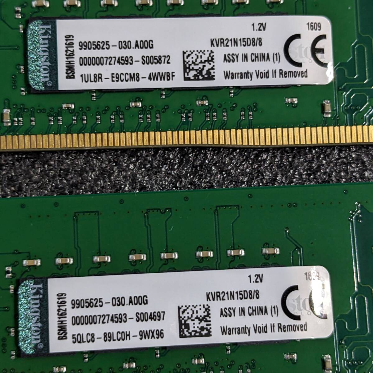 キングストンのDDR4メモリ、8GB2枚組合計16GBのセットです。