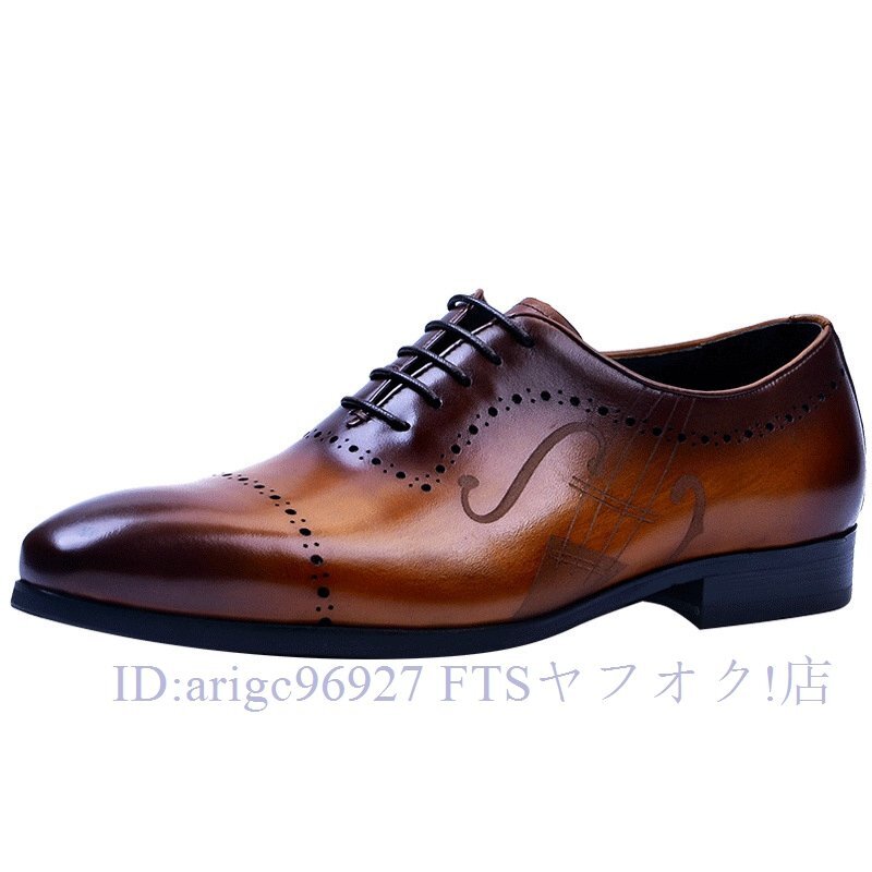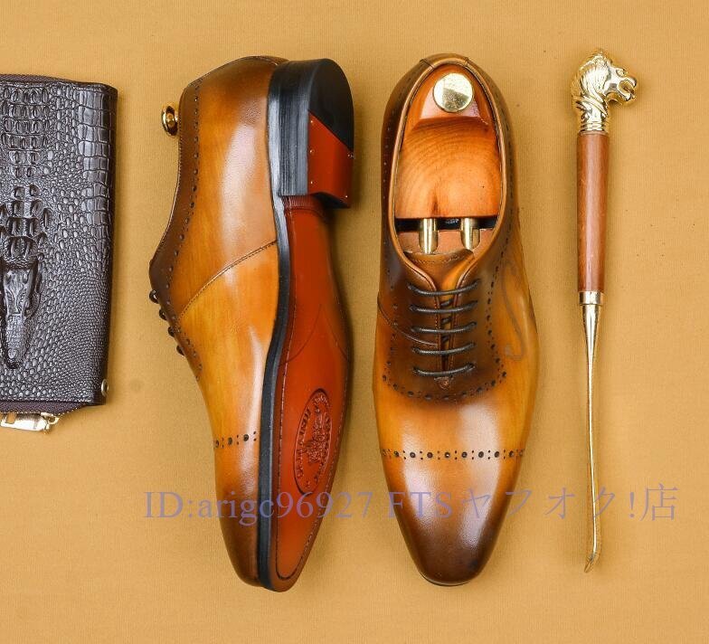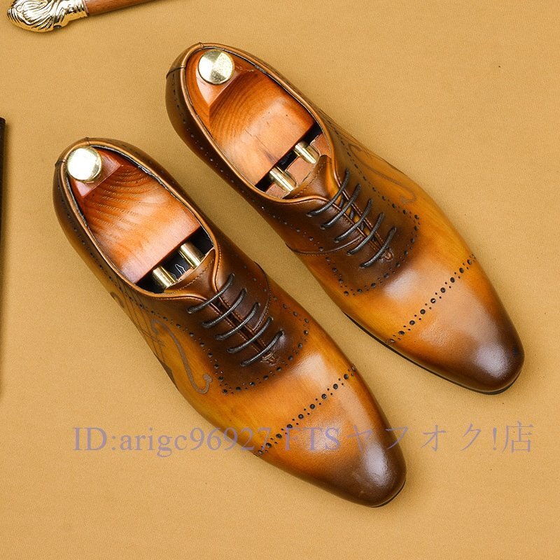 B2210☆新品純手工細作 高級高品質本革使用 希少 手塗仕上げ彫り ビジネスシューズ メンズ レザーシューズ ブラウン 24.5cm ~27cm