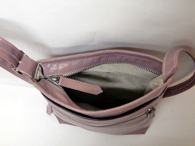 『牛革のショルダーバッグ』軽くて皮革ならではの天然感を味わえます。スマホ・財布が入るコンパクトなサイズ。